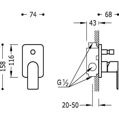 Loft Inbouwmengkraan (2‑wegs) inbouwkraan inbegrepen