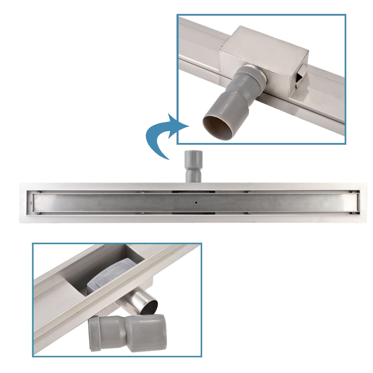 De slanke goot van slecht 7 cm is voorzien van een standaard rooster. In de set zijn verschillende design rooster te kiezen om de douchegoot volledig te laten aan sluiten op uw wensen. Daarnaast is er een keuze mogelijkheid in de lengte van de goot. Namelijk 60, 70, 80, 90 of 100 cm. De goot is gemaakt van RVS. RVS is een uitstekende keuze voor een douchedrain door zijn vaste harde vorm. Het roest niet en gaat daardoor lang mee.