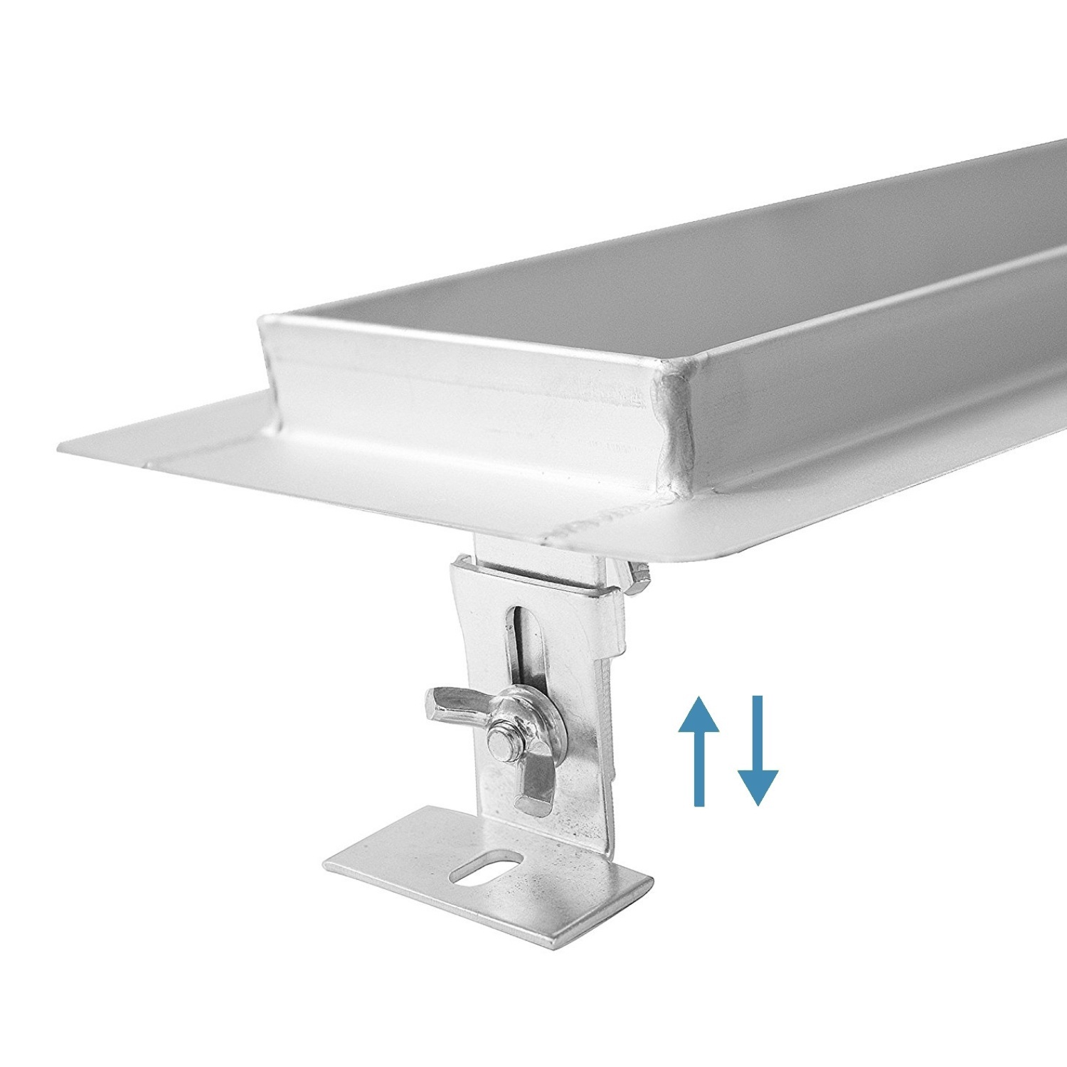 Het voordeel van de douchegoot is dat u het sifon eruit kan halen om schoon te maken. Met een extra haarfilter kunt u de goot nog schoner houden en u voorkomt hiermee verstopping. De sifon is slechts 6.7cm diep (geïntegreerd). De muurflens dient voor extra stevigheid aan de muur. Zo zit de goot vast aan de vloer, maar ook aan de wand.