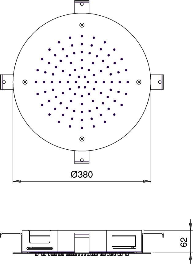 Inbouw ronde hoofddouche 38 cm. Gemaakt van RVS. Deze hoofddouche beschikt over het Shower Power Systeem waarmee u water zult besparen.