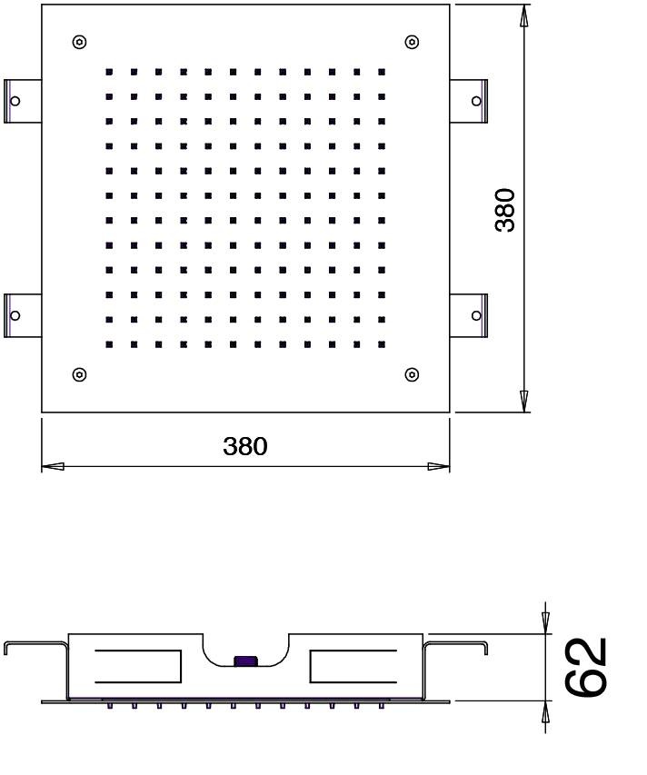 Vierkante inbouw hoofddouche 38x38 cm, in een gepolijste of geborstelde uitvoering. Beschikt over het vernieuwende Shower Power System dat waterverspilling tegengaat.