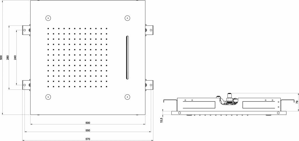Vierkante inbouw hoofddouche van 50 cm, met LED lichtfunctie. Deze hoofddouche is vervaardigd uit RVS en heeft een gepolijste of geborstelde afwerking naar keuze. Deze hoofddouche heeft in elke nozzle een enkele LED zitten, met de bijgeleverde afstandsbediening kunt u de kleur van de hoofddouche afstellen. Daarnaast is er nog een keus uit 1 van de 2 chromotherapie programma's; relaxing of exciting.