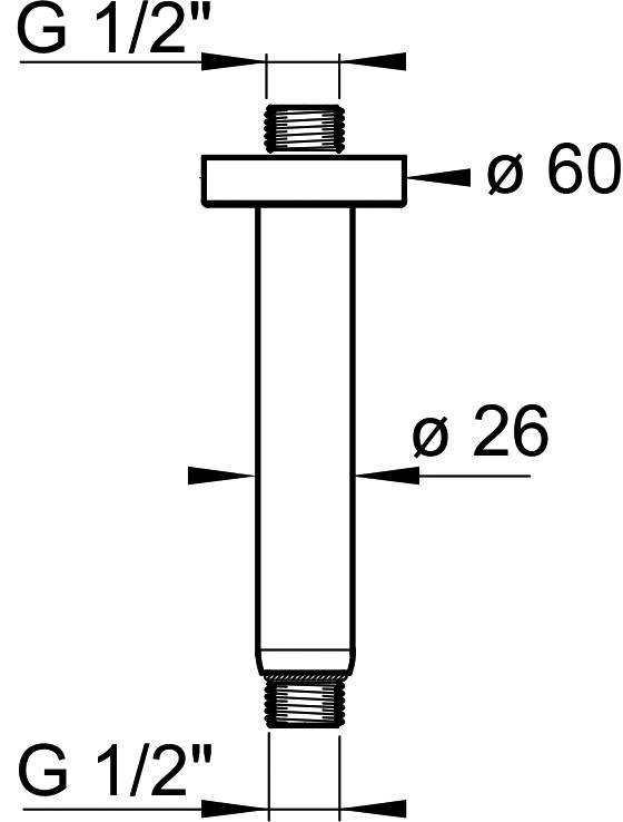 Plafondbuis Mate, verkrijgbaar in chroom of geborsteld staal. In drie verschillende maten; 15 30 of 60 cm.