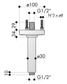 Plafondbuis Mate, verzwaarde uitvoering verkrijgbaar in geborsteld nikkel of chroom. In twee verschillende maten; 15 of 30 cm.