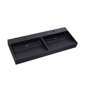 Wastafel Sanilux Quartz Classic 120x47x3 cm Dubbel Keramiek Mat Zwart (0 kraangaten)