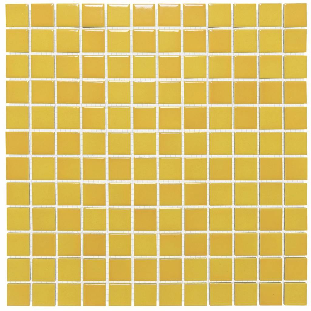 Deze fraaie mozaïektegel van The Mosaic Factory behoort tot de Barcelona-serie. De tegel heeft een afmeting van 30x30cm en is glanzend geglazuurd afgewerkt. De mozaïektegels op de tegelmaat hebben een lengte en breedte van 23 mm, terwijl de voegmaat 2,5 mm bedraagt. De kleur van deze tegel is geel gevlamd.