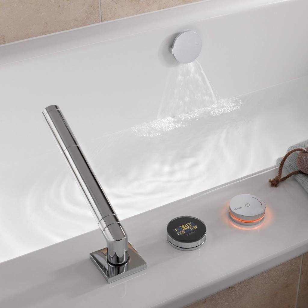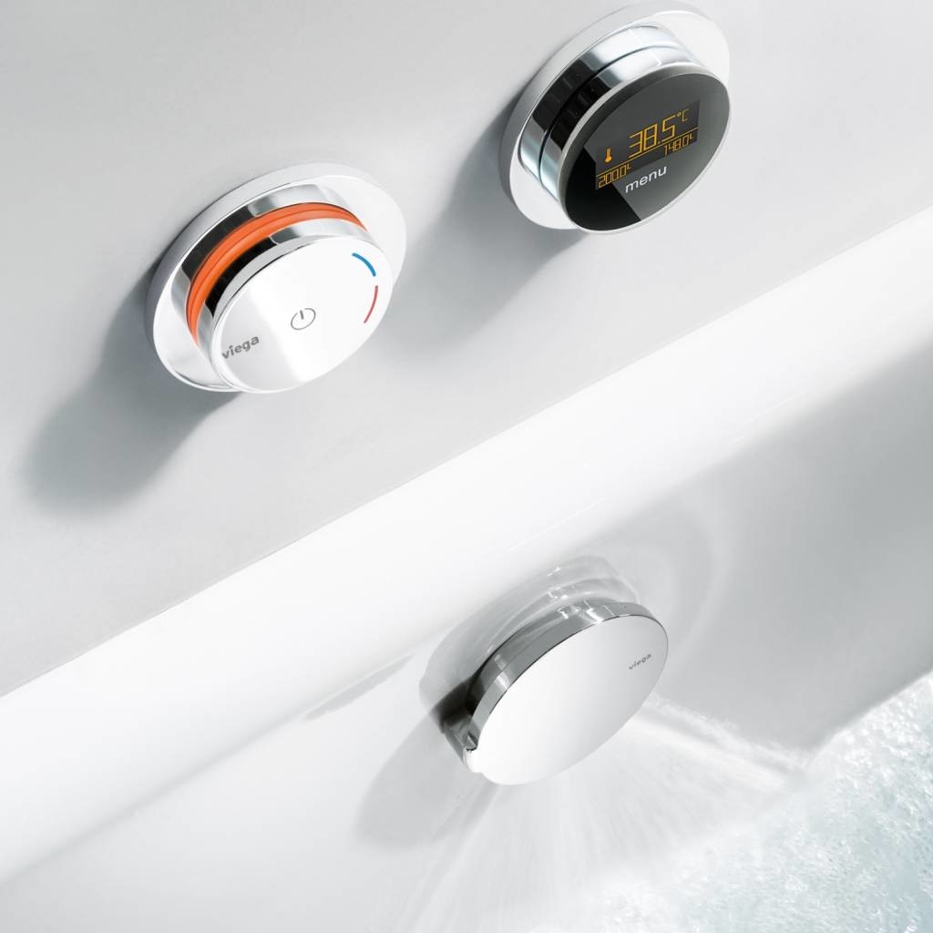 De Viega Trio E kan u gemakkelijk combineren met een badvul overloopcombinatie van Viega en zo de temperatuur instellen.