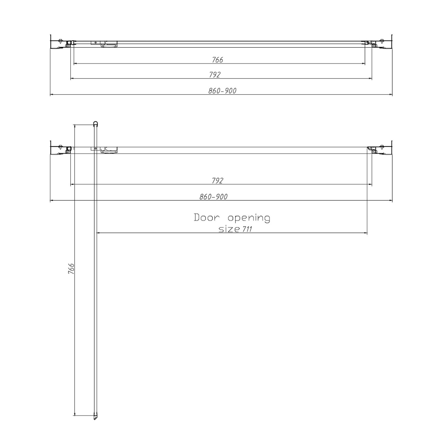 De nisdeur heeft een verstelbare breedte van 86 cm tot een max van 90 cm. De hoogte van de nisdeur is 200 cm. De glasdikte zoals eerder benoemd is 8 mm. De deur is zowel linksom als rechtsom te plaatsen en wordt geleverd met bevestigingsmateriaal en is naar buiten draaiend.