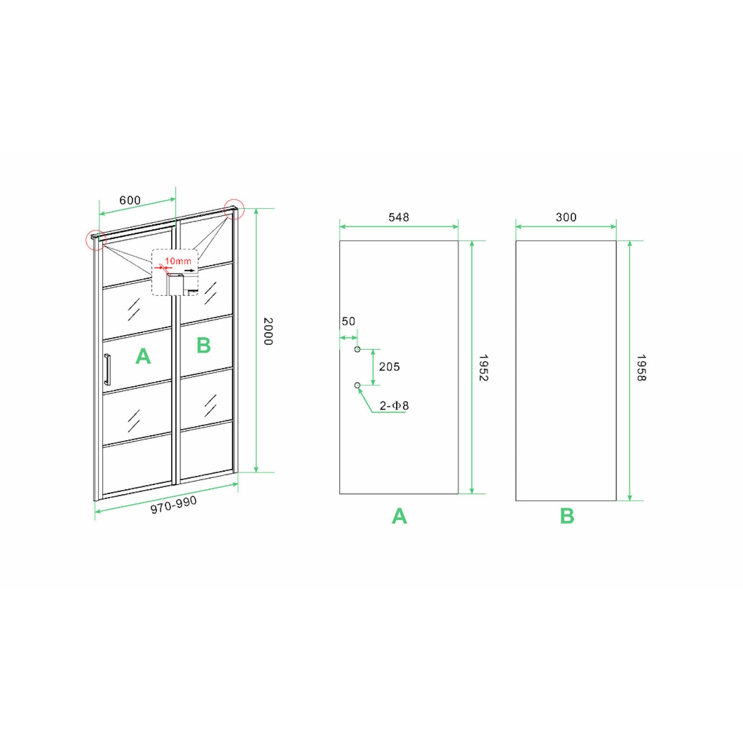 De deur zowel links als rechtsom te plaatsen, hierdoor is de wand in elke mogelijkheid toepasbaar.