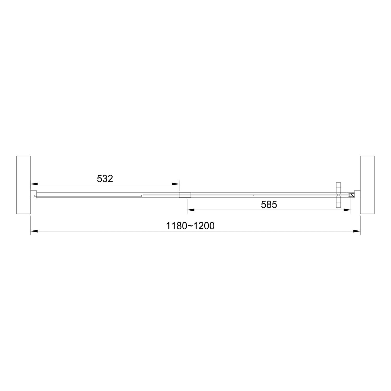 De nisdeur is 120 cm breed en de wand is 200 cm hoog. Het zijwandje naast de deur is 53.2 cm breed. De profielen van de cabine zijn gemaakt van aluminium.