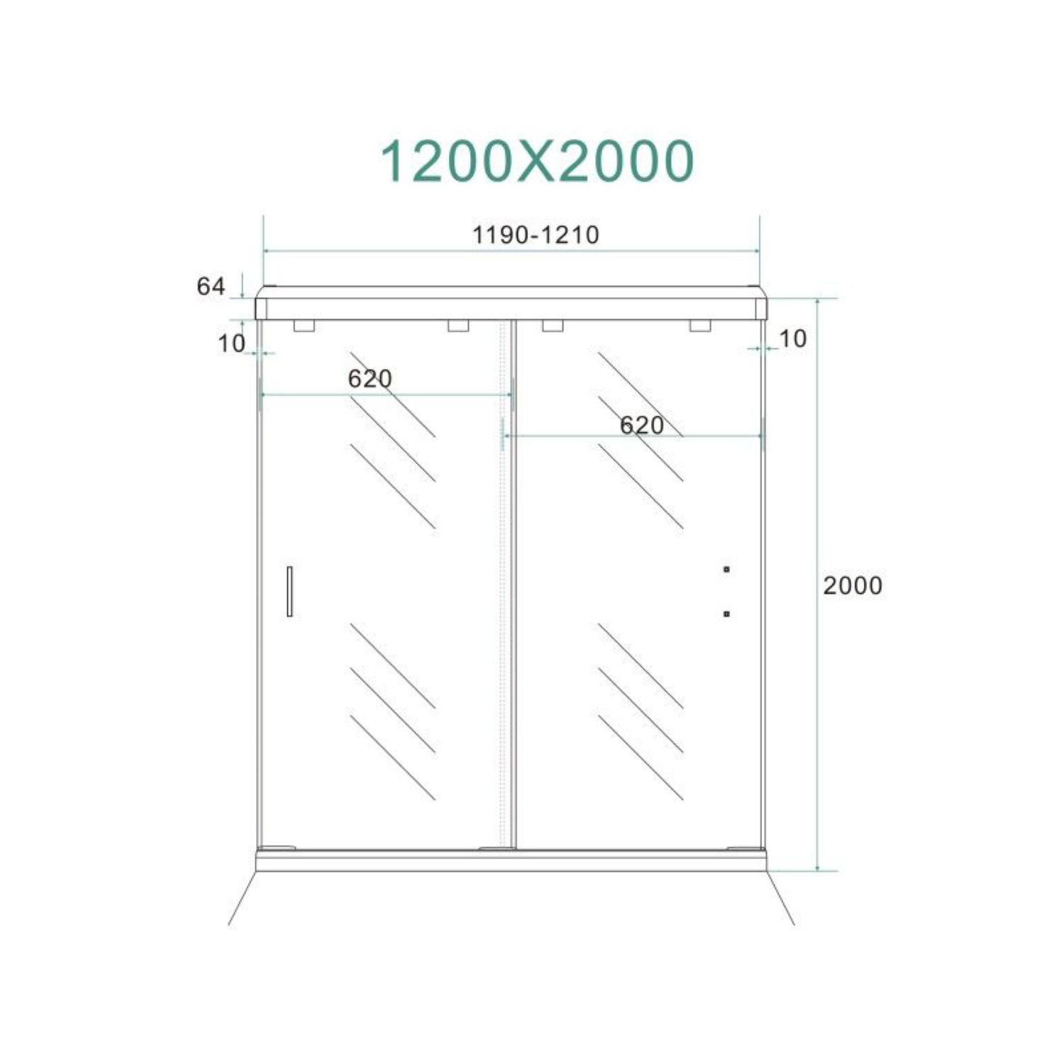 De douchedeuren hebben elk een breedte van 62 cm en een hoogte van 200 cm. De deuren zijn samen, naast elkaar, 124 cm breed. Het heldere glas kent een dikte van 8 mm en is voorzien van NANO Coating veiligheidsglas.