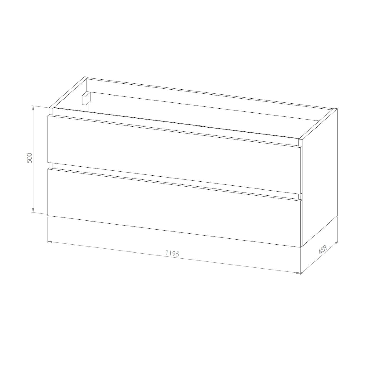 De onderkast is voorzien van twee laden die zijn uitgerust met soft-close scharnieren. Dit zorgt er voor dat de laden bij gebruik zacht en geruisloos sluiten, wat voor een lange levensduur zorgt. Tevens is de onderkast voorzien van een aluminiumkleurige greeplijst.
