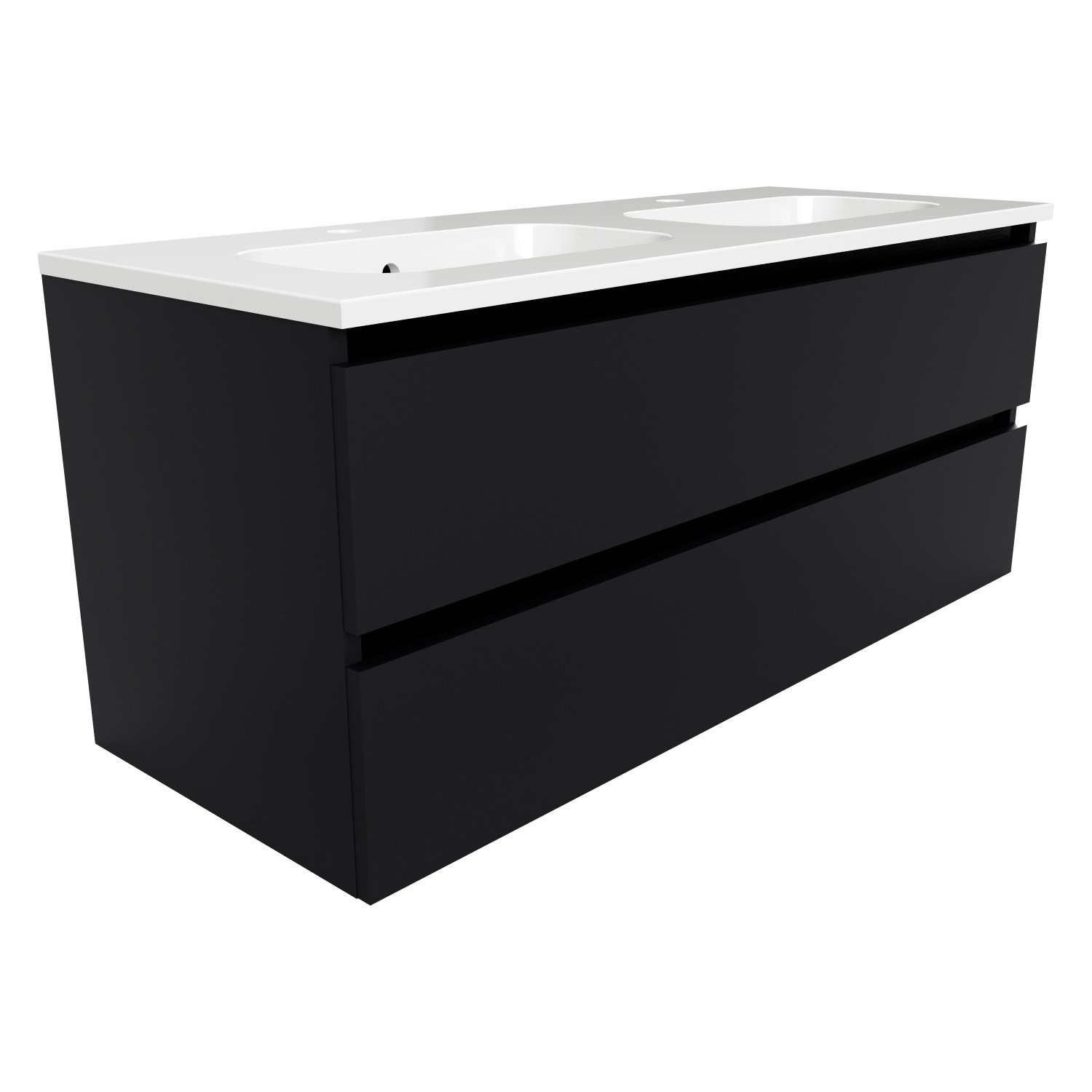 De onderkast is voorzien van twee laden die zijn uitgerust met soft-close scharnieren. Dit zorgt er voor dat de laden bij gebruik zacht en geruisloos sluiten, wat voor een lange levensduur zorgt. Tevens is de onderkast voorzien van een mat zwarte greeplijst.