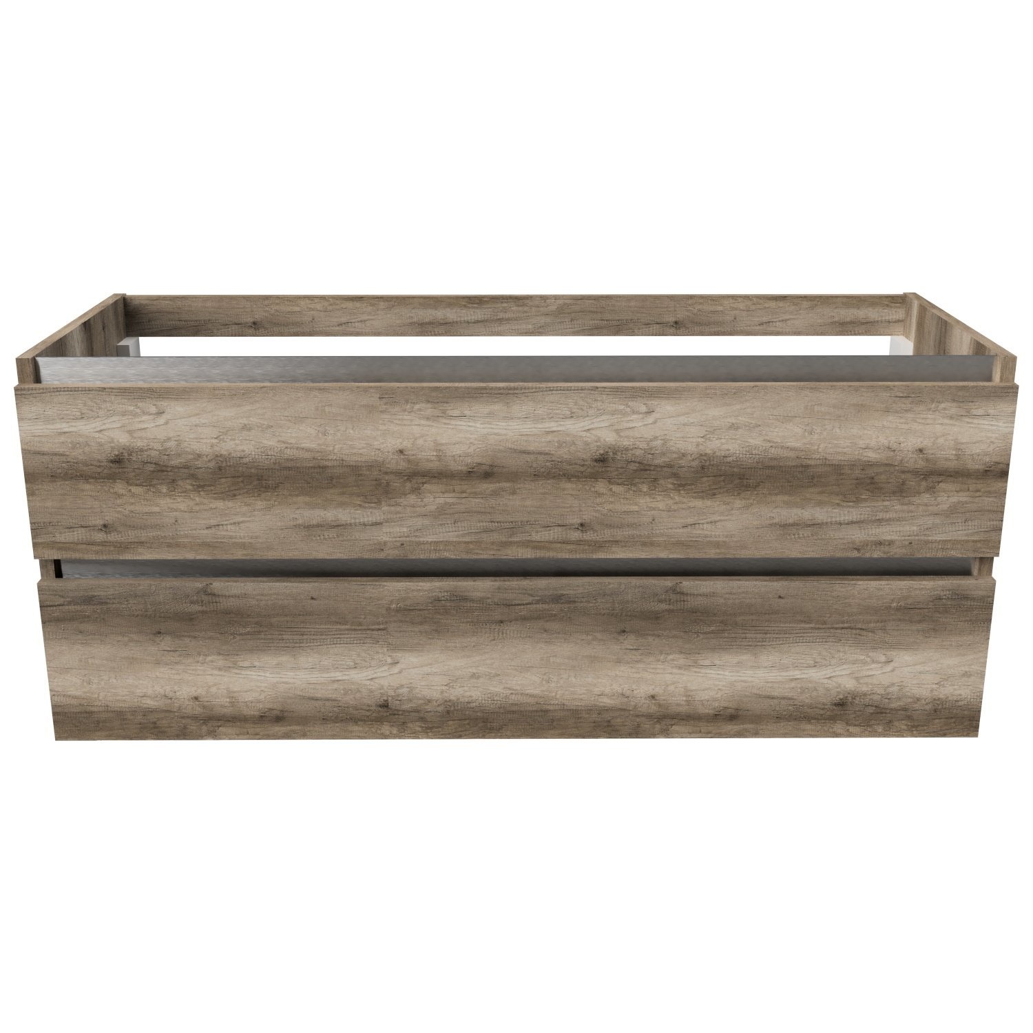De onderkast is voorzien van twee laden die zijn uitgerust met soft-close scharnieren. Dit zorgt er voor dat de laden bij gebruik zacht en geruisloos sluiten, wat voor een lange levensduur zorgt. Tevens is de onderkast voorzien van een aluminiumkleurige greeplijst.