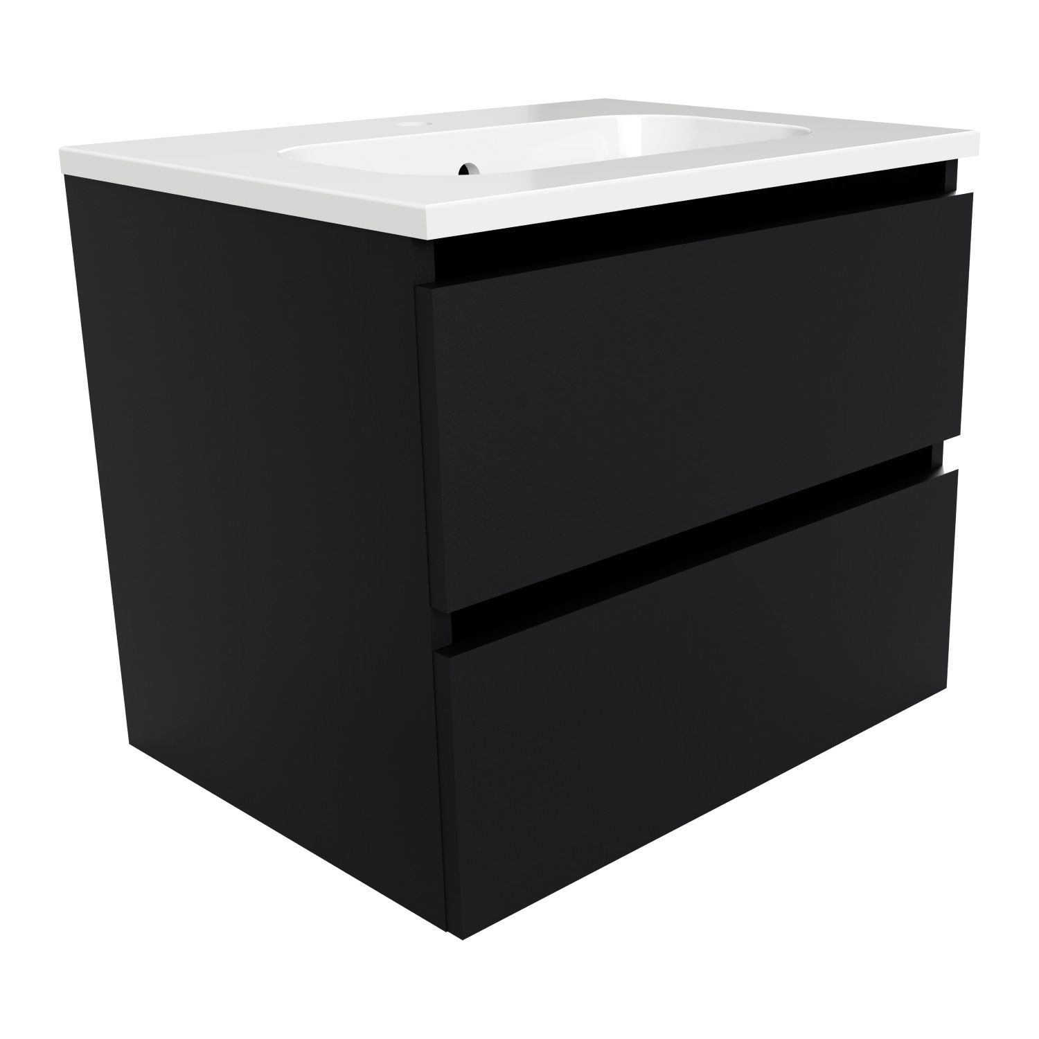 De onderkast is voorzien van twee laden die zijn uitgerust met soft-close scharnieren. Dit zorgt er voor dat de laden bij gebruik zacht en geruisloos sluiten, wat voor een lange levensduur zorgt. Tevens is de onderkast voorzien van een mat zwarte greeplijst.
