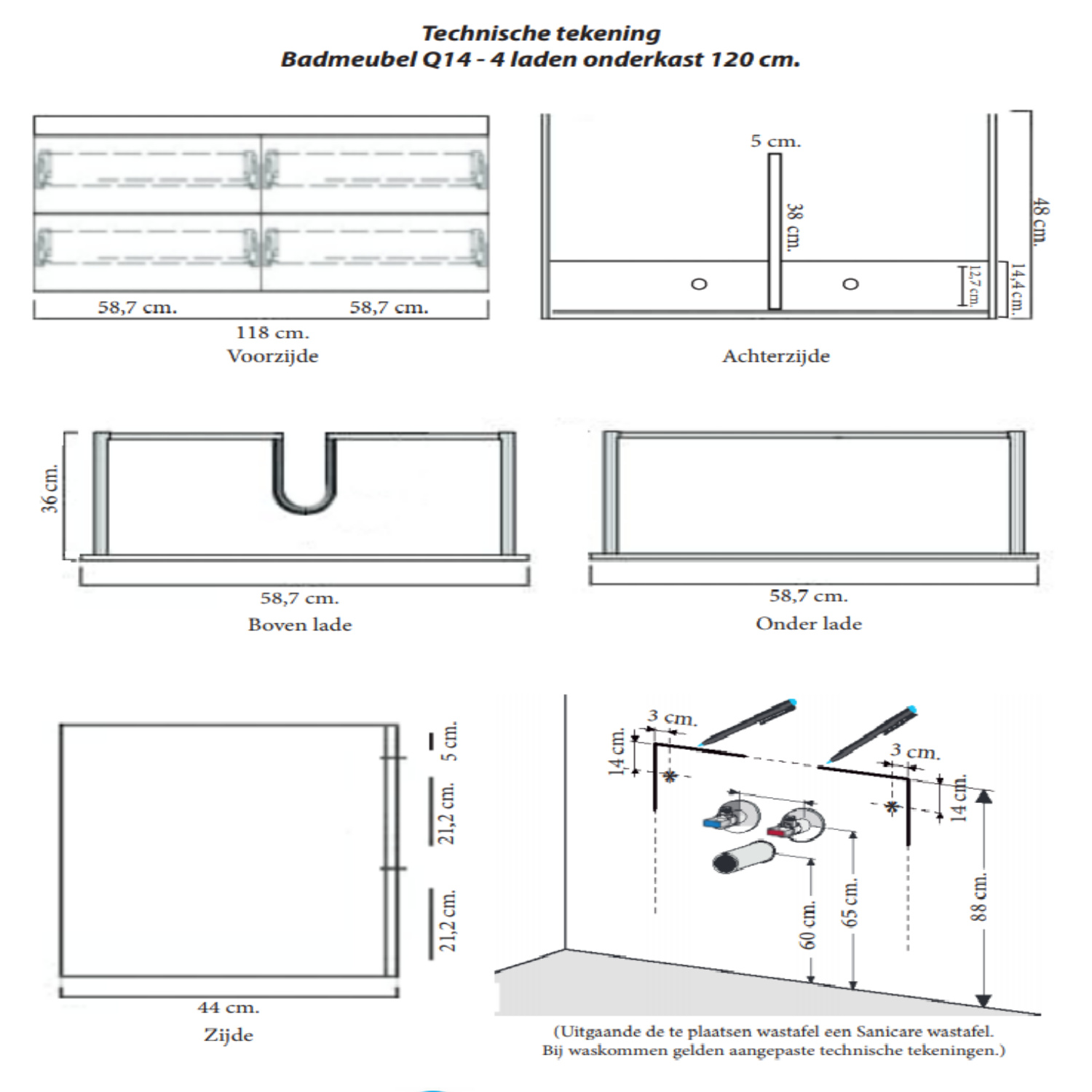 Deze onderbouwkast van het merk Sanicare past perfect in uw badkamer. De onderbouwkast beschikt over vier laden waar u gemakkelijk uw badkamerproducten in kwijt kunt. De vier laden zijn voorzien van een chromen greep die horizontaal bevestigd worden. Het product is verder voorzien van soft-closing Blum scharnieren die ervoor zorgen dat de laden zacht en geruisloos zullen sluiten bij gebruik.