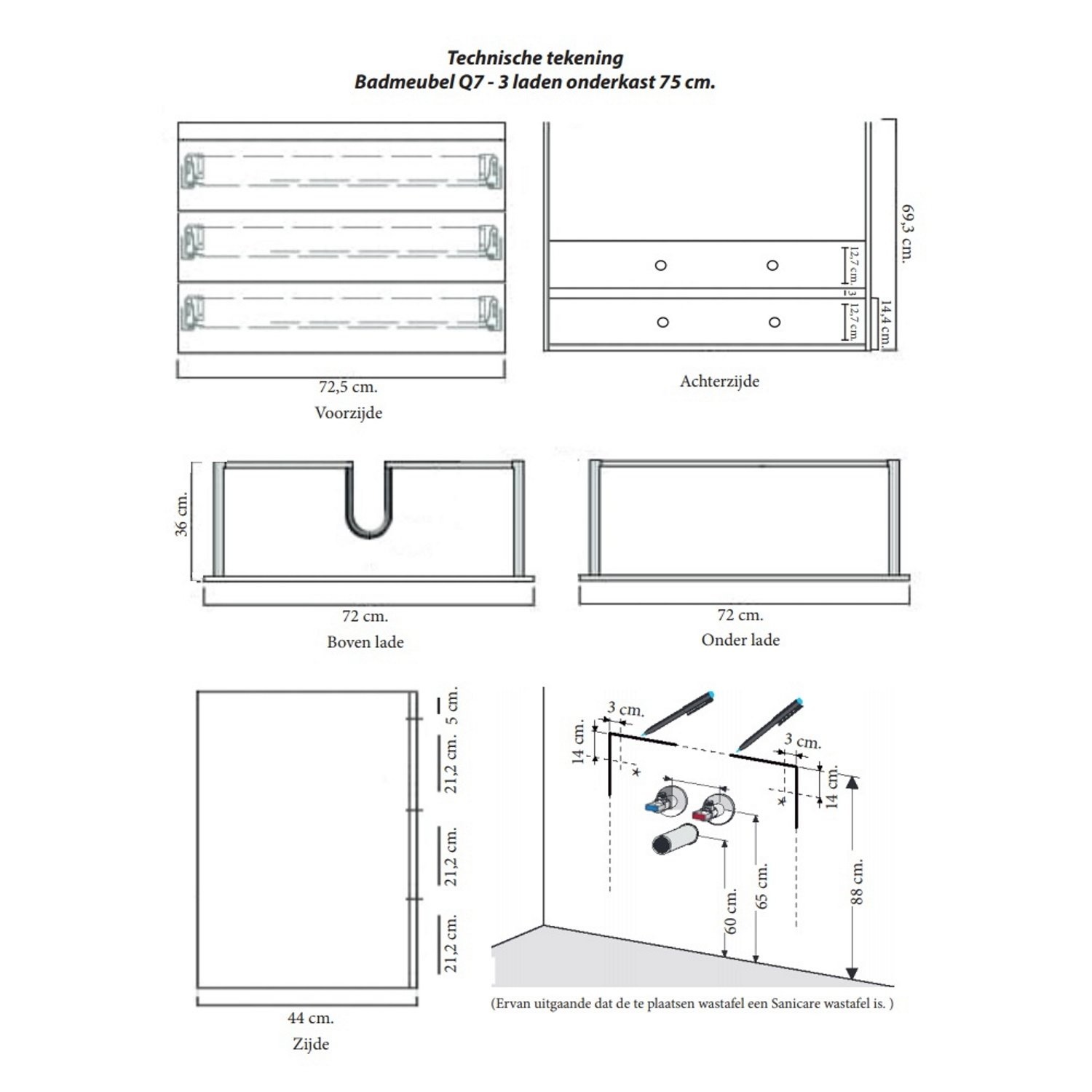 Deze onderbouwkast van het merk Sanicare past perfect in uw badkamer. De onderbouwkast beschikt over drie laden waar u gemakkelijk uw badkamerproducten in kwijt kunt. De drie laden zijn zelfsluitend en beschikken dan ook niet over een greep. Het product is verder voorzien van soft-closing Blum scharnieren die ervoor zorgen dat de laden zacht en geruisloos zullen sluiten bij gebruik.