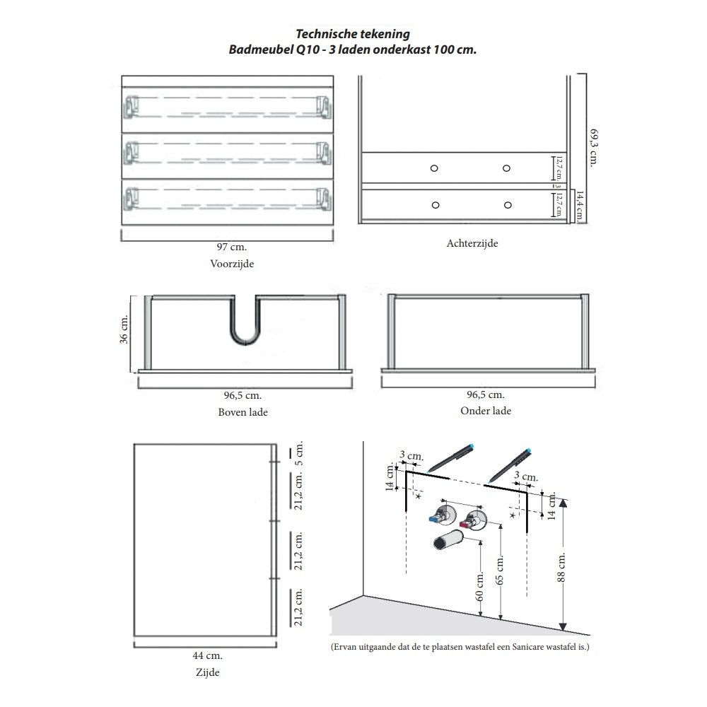 Deze onderbouwkast van het merk Sanicare past perfect in uw badkamer. De onderbouwkast beschikt over drie laden waar u gemakkelijk uw badkamerproducten in kwijt kunt. De drie laden zijn voorzien van een chromen greep die horizontaal bevestigd worden. Het product is verder voorzien van soft-closing Blum scharnieren die ervoor zorgen dat de laden zacht en geruisloos zullen sluiten bij gebruik.
