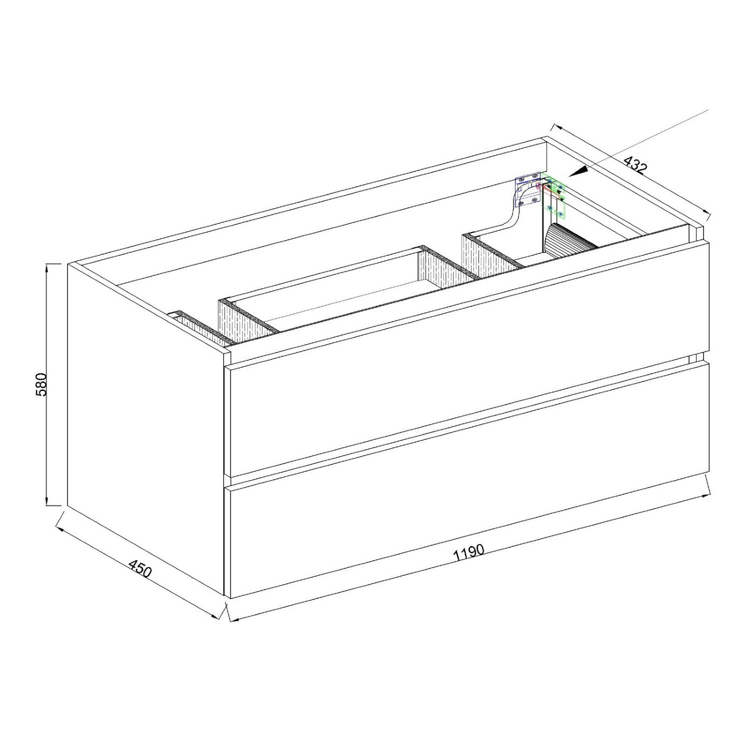 Onderkast Wiesbaden Marmaris 2 Laden En Uitsparingen 120 cm Exclusief Topblad Mat Zwart