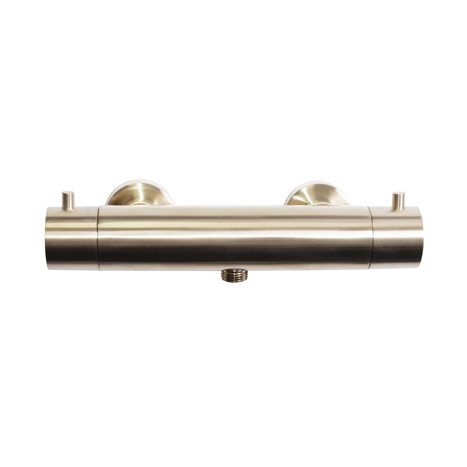 De opbouw douchekraan kent een afwerking in de kleur geborsteld messing. Vanwege het feit dat de opbouw kraan van messing is gemaakt is deze uitstekend bestand tegen vochtige ruimtes waardoor een lange levensduur gegarandeerd is. Houd er tijdens de montage rekening mee dat deze douchekraan een standaard hart-op-hart maat van 15 cm heeft.