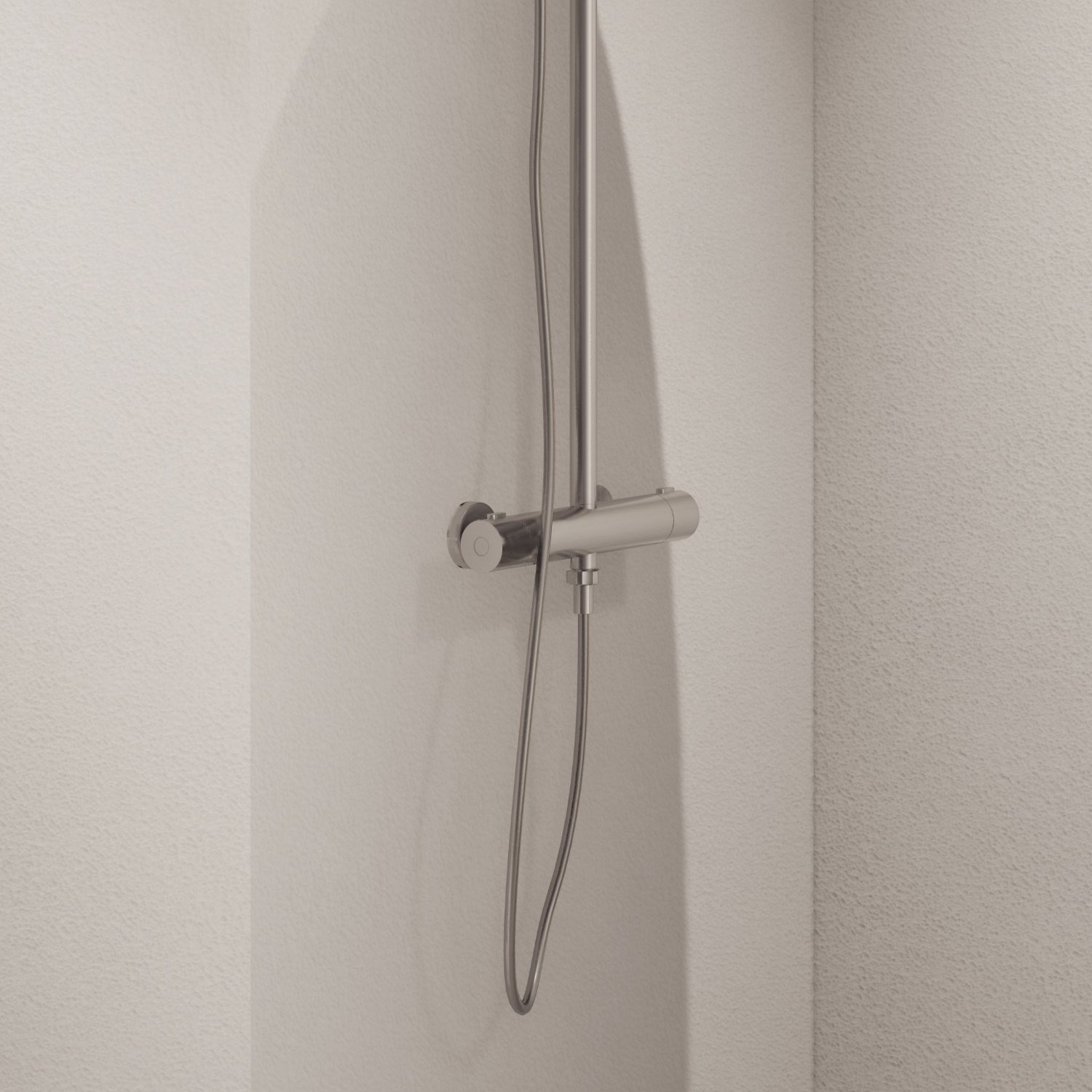 De handdouche is een staaf model en bewaart u bij de hand in de handdouchehouder die op de glijstang bevestigd dient te worden. De handdouchehouder is eenvoudig te verzetten. De complete regendouche set is volledig van messing gegoten en mooi afgewerkt met een glanzend chrome laag.