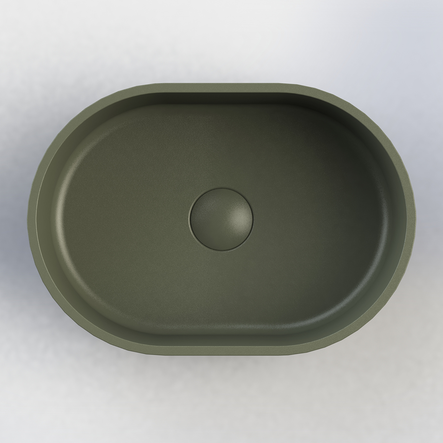 Deze specificieke waskom is ovaal en heeft een breedte van 40 cm. De kom is 28 cm diep en 13 cm hoog. Deze kom is uitgevoerd in een mat Groen kleur.