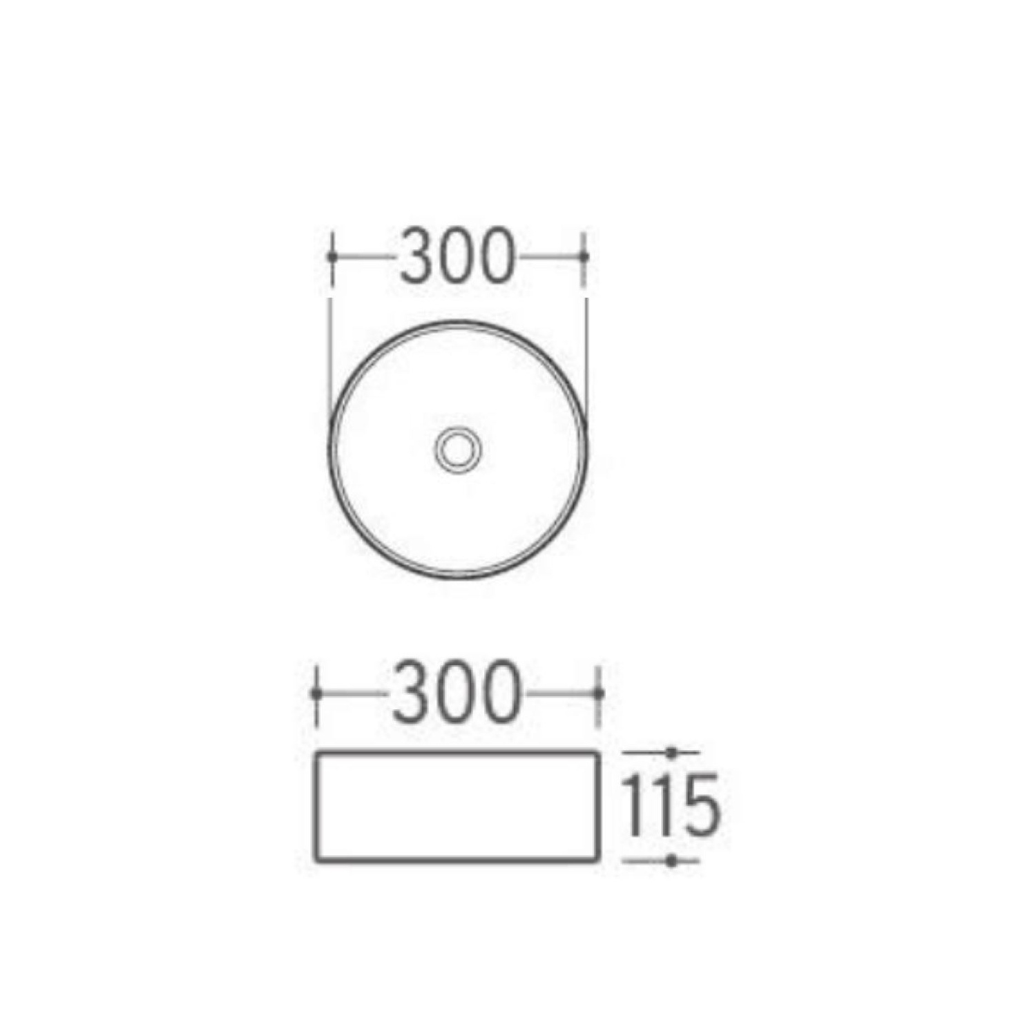 De vrijstaande waskom is gemaakt van keramiek. Heeft een diameter van 30 cm en 11,5 cm hoog.