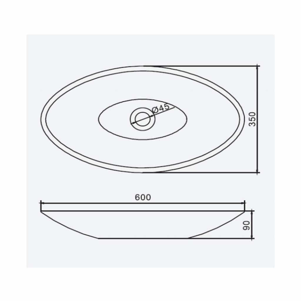Deze opbouw waskom is geproduceerd in de kleur mat wit en heeft een ovale vorm. De hoogte van deze waskom bedraagt 9 cm, de breedte 60 cm en de diepte 35 cm. Het matte, fluweelachtige oppervlak van de wasbak voelt prettig aan en is makkelijk schoon te maken en te onderhouden.