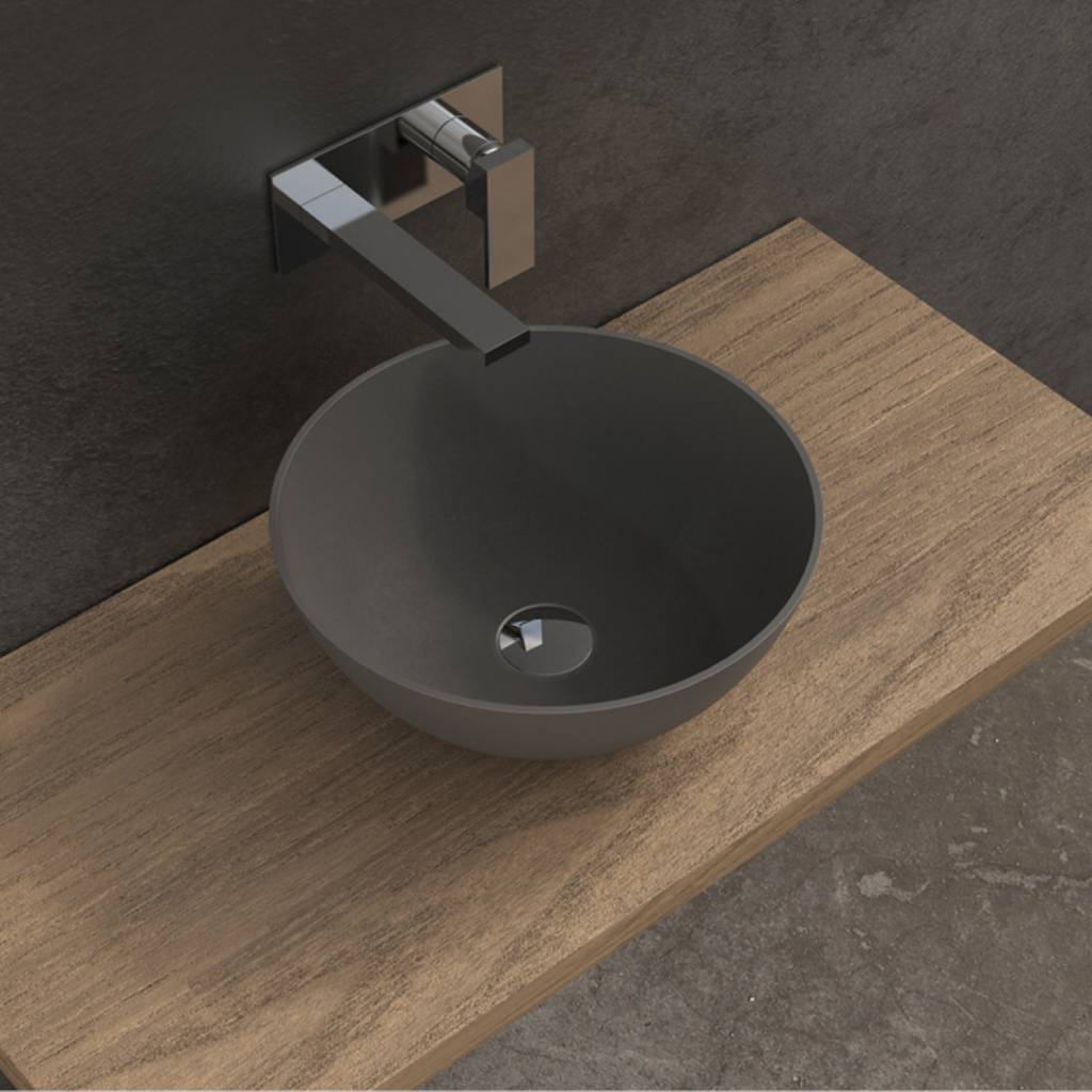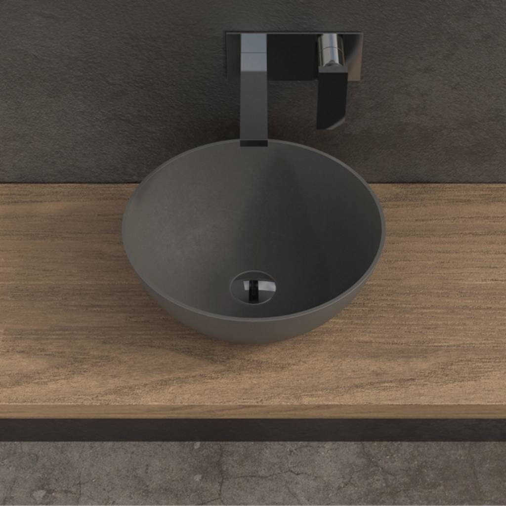 Deze opbouw waskom heeft een matte donkergrijze kleur en een dunne rand van 6 mm. Het matte, fluweelachtige oppervlak van de wasbak voelt prettig aan en is makkelijk schoon te maken en te onderhouden.
