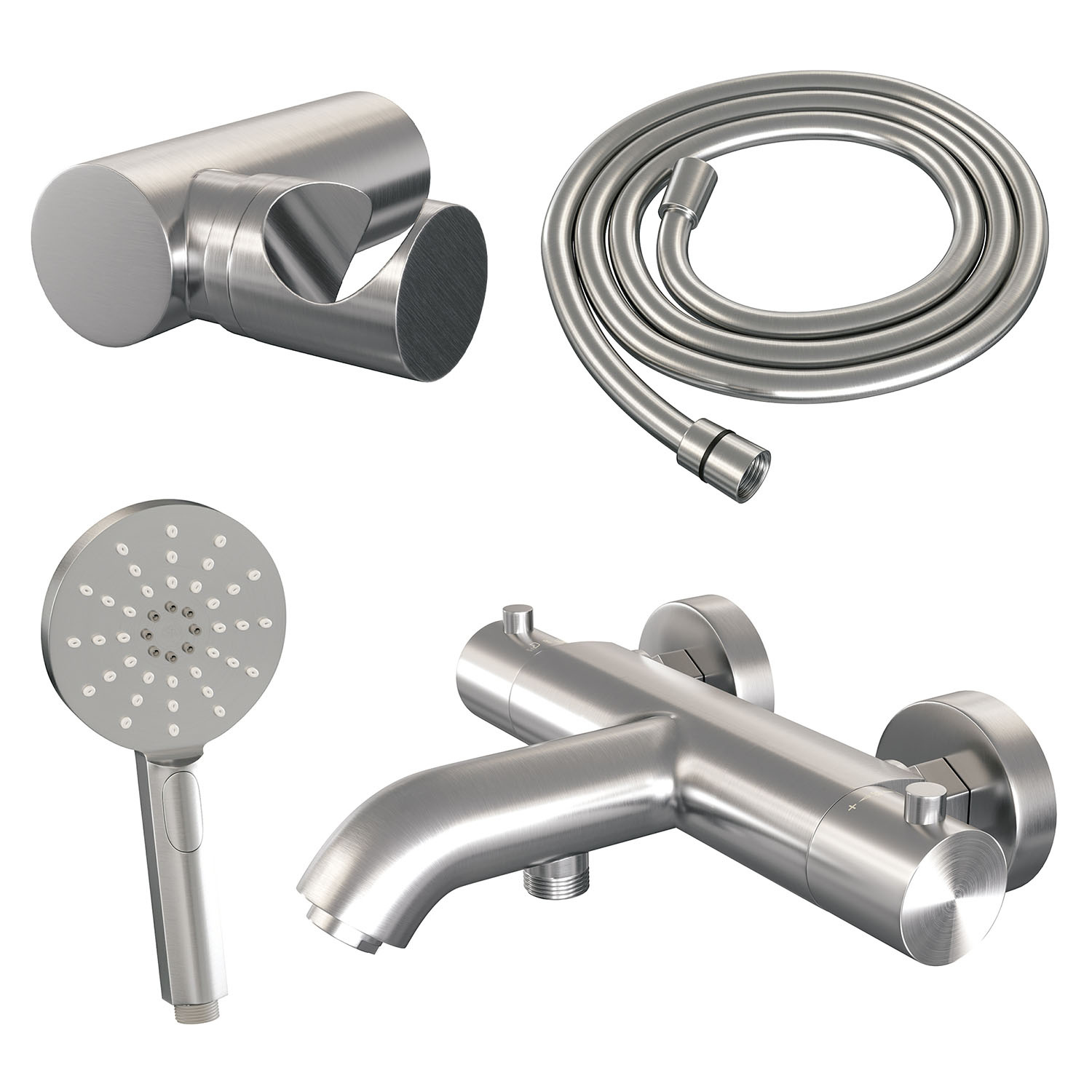 Deze bijzondere kraan van het merk Brauer behoort tot de Brushed Edition serie en is een directe blikvanger in uw badkamer. De opbouw bad- en douchekraan is gemaakt van messing en kent een schitterende afwerking in de kleur geborsteld RVS. De thermostatische kraan is uitgerust met een omstelmogelijkheid en is voorzien van twee knoppen waarmee u de temperatuur en de kracht van de waterstraal bepaalt. Aan de onderzijde is de kraan voorzien van een aansluitpunt waarop u een handdouche aan kunt sluiten. Ook krijg u een wandhouder met een doucheslang en een handdouche.