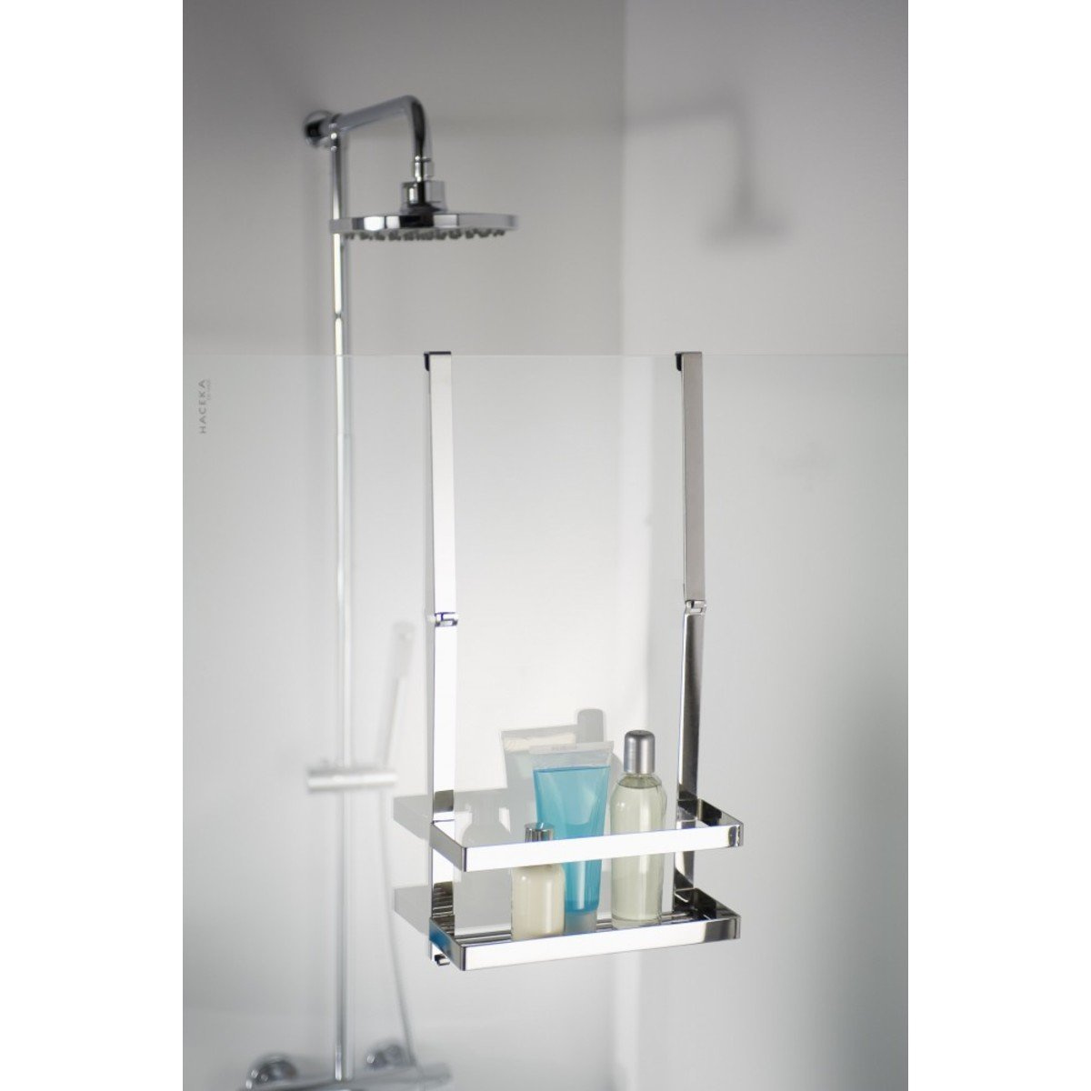 Deze flaconhouder is van het populaire badkamermerk Haceka en behoort tot de Selection-serie. De houder kan eenvoudig worden opgehangen aan uw douchedeur of inloopdouche en heeft meer dan genoeg ruimte om verschillende doucheattributen op te bewaren. Het chroomkleurige ophangrek is mat afgewerkt, heeft een breedte van 25,4 cm en een hoogte van 52,2 cm. Doordat het rek eenvoudig kan worden opgehangen is het niet nodig om te boren of te lijmen om dit artikel aan de douchewand te bevestigen.
