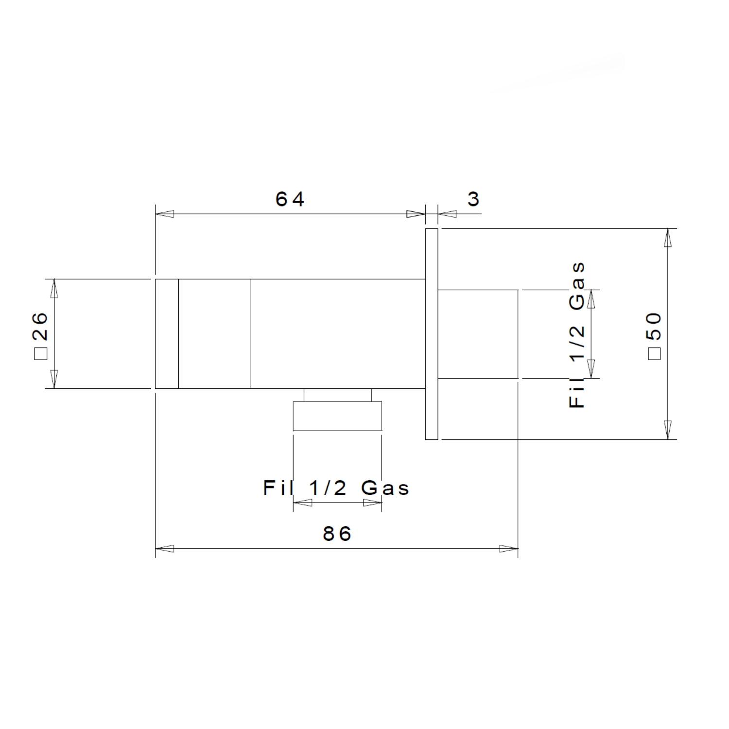 Onderaan zit een wateruitlaat waar de 1/2' doucheslang aansluiting aan bevestigd kan worden. Het water stroomt dan van de houder via de slang naar de handdouche.