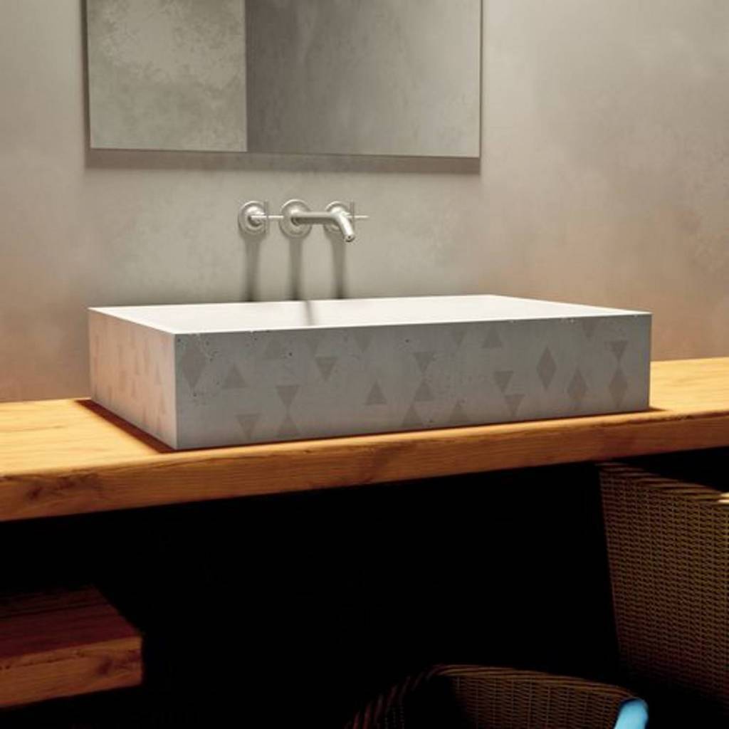 Een opzetwastafel van beton bestaat uit cement en bepaalde toevoegingen, waar het materiaal een specifieke uitstraling door krijgt. Er wordt voor het vervaardigen van waskommen en wastafels gebruik gemaakt van een speciaal soort cement, zodat het beton zeer stevig en duurzaam wordt. Een voordeel van beton is dat het zeer hard, hittebestendig en slijtvast is. Een betonnen gootsteen gaat dan ook zeer lang mee.