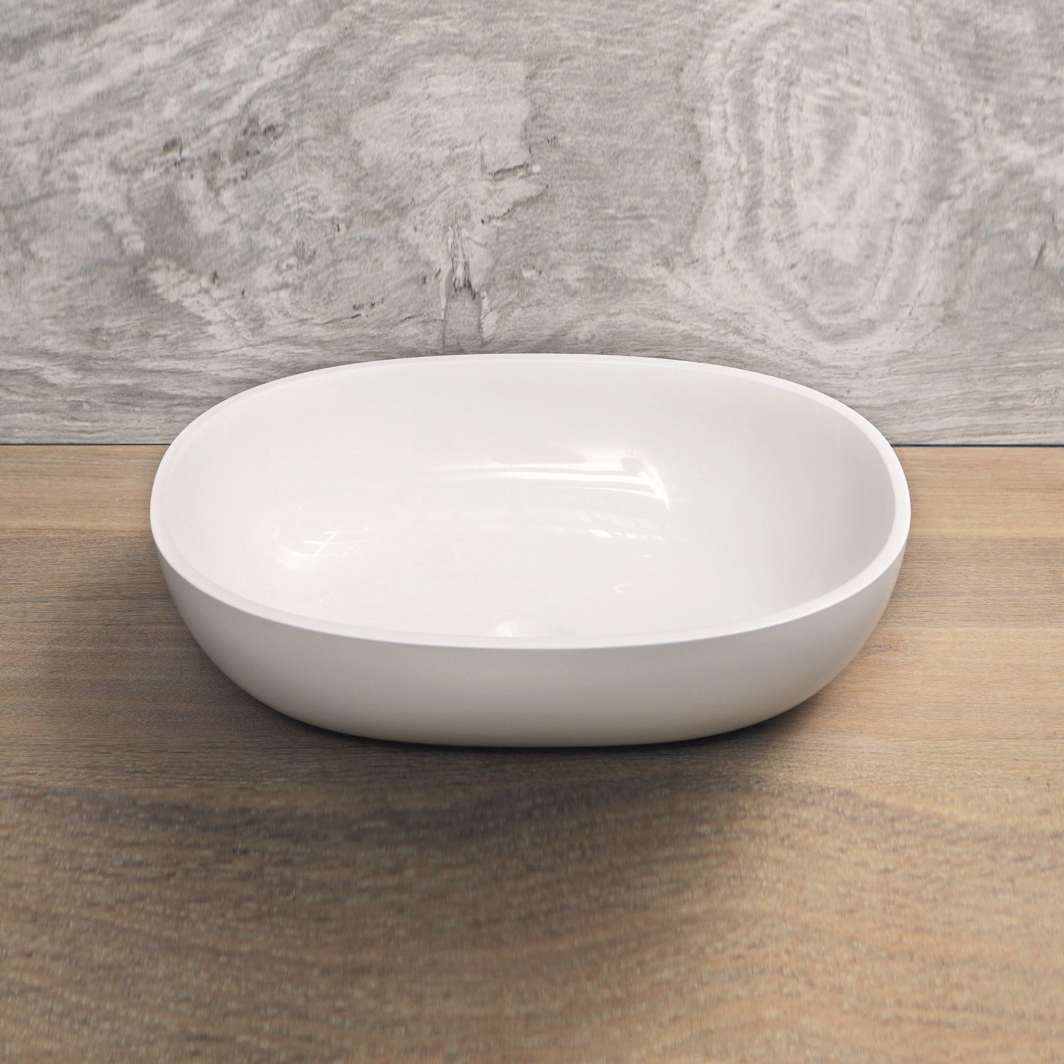 Een mooie opzetwastafel voor in uw badkamer. U kunt de opzetwastafel met verschillende onderkasten combineren om zo de gewenste samenstelling te krijgen. De wastafel is glanzend wit, omdat de kom gemaakt is van mineral stone.