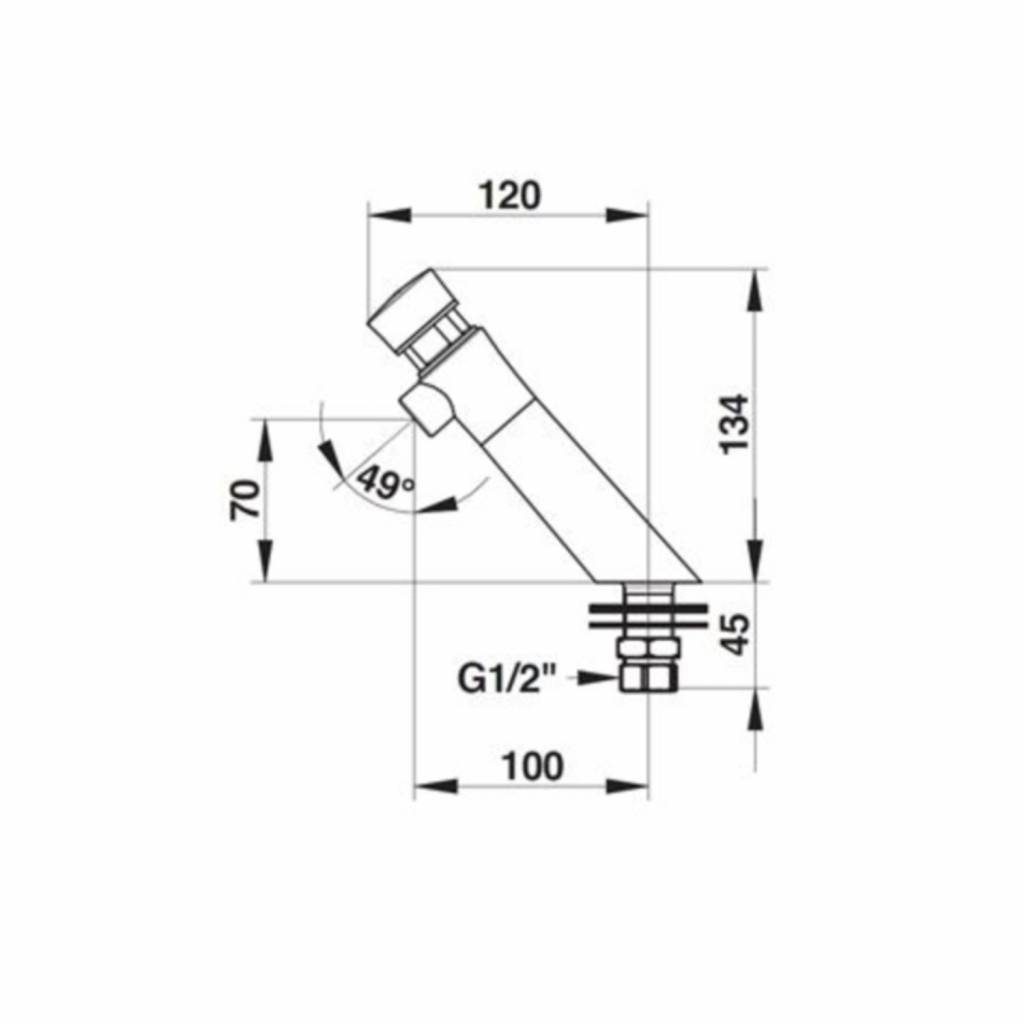 De kraan is volledig Messing verchroomd en heeft een uitloop van 12 cm. Dit is een wandkraan met een aansluiting van 1/2. De kraan is ook beschikbaar met een sluitingstijd van 7 sec en met warm water.