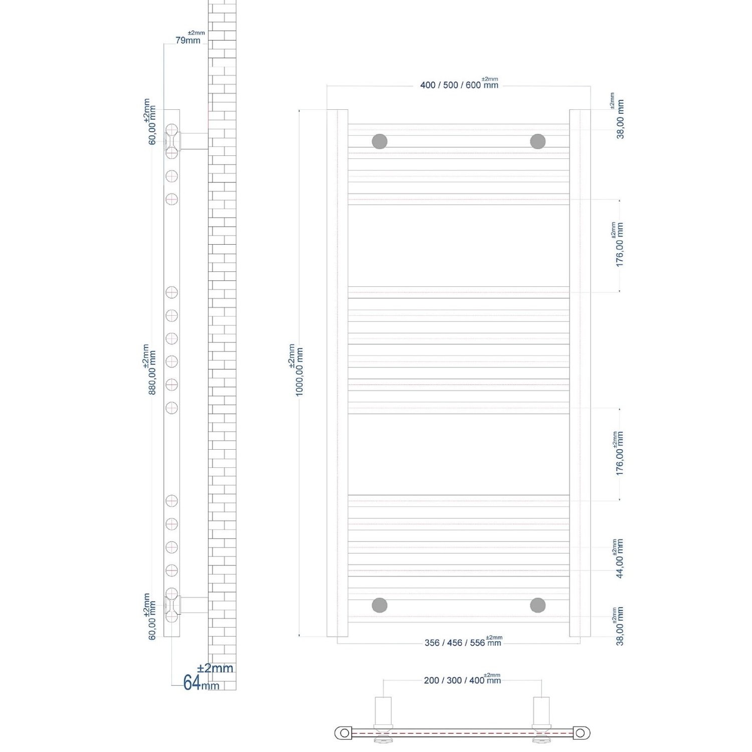 Dit model is verkrijgbaar in lengtes van 80 cm, 100 cm, 120 cm, 160 cm, 160 cm en 1100 cm. Daarnaast is deze radiator verkrijgbaar in breedtes van 40 cm, 50 cm en 60 cm. Dus hoe dan ook is er een geschikt model voor uw badkamer. Let goed op dat u de juiste radiator besteld voor de grootte van uw badkamer. Zie de afbeeldingen voor meer uitleg over hoe u dit kan berekenen.