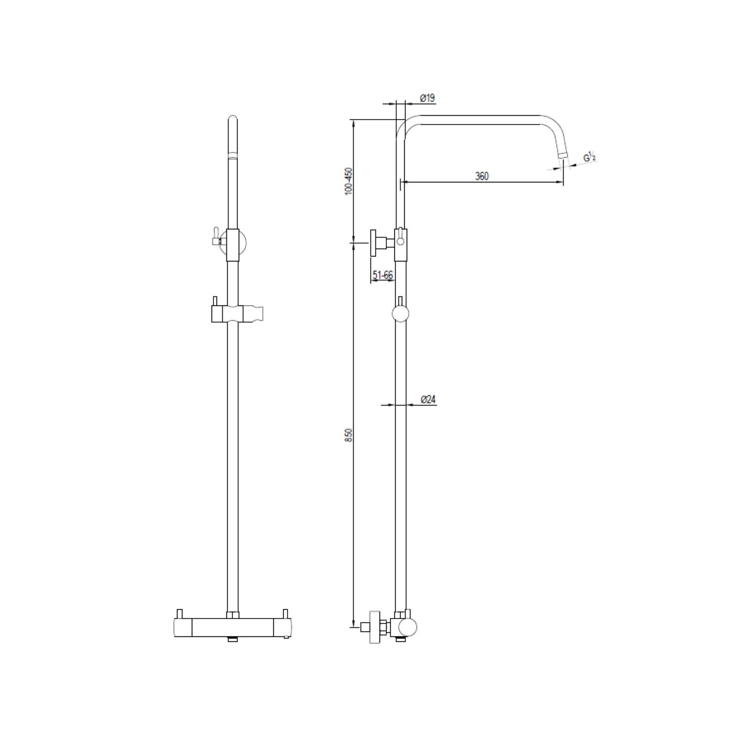De meegeleverde doucheslang is 150cm lang. De handdouche heeft 1 stand.