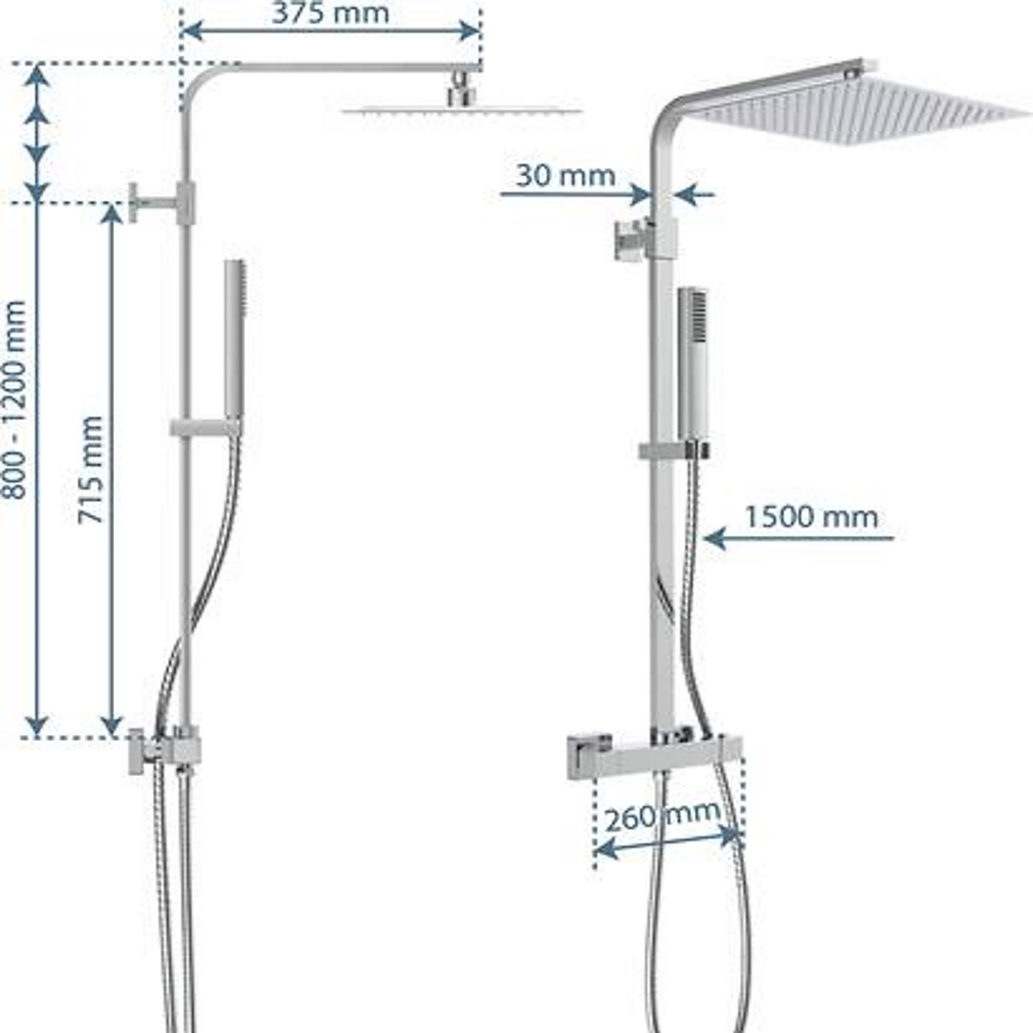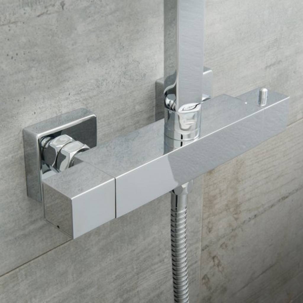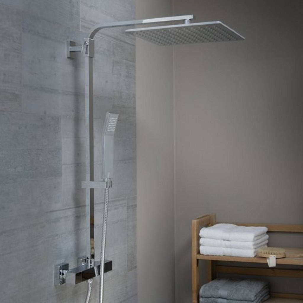 Tips: het is niet mogelijk om de handdouche te monteren op een andere glijstang dan de glijstang die bij deze set hoort. Ook adviseren wij om de artikelen uit deze doucheset schoon te maken met een niet-agressief schoonmaakmiddel: op deze manier treedt er zo min mogelijk kleurverlies op. De hart-op-hart afstand van de thermostaatkraan bedraagt 15 cm: houd hier dus rekening mee bij het monteren van de regendouche opbouwset!