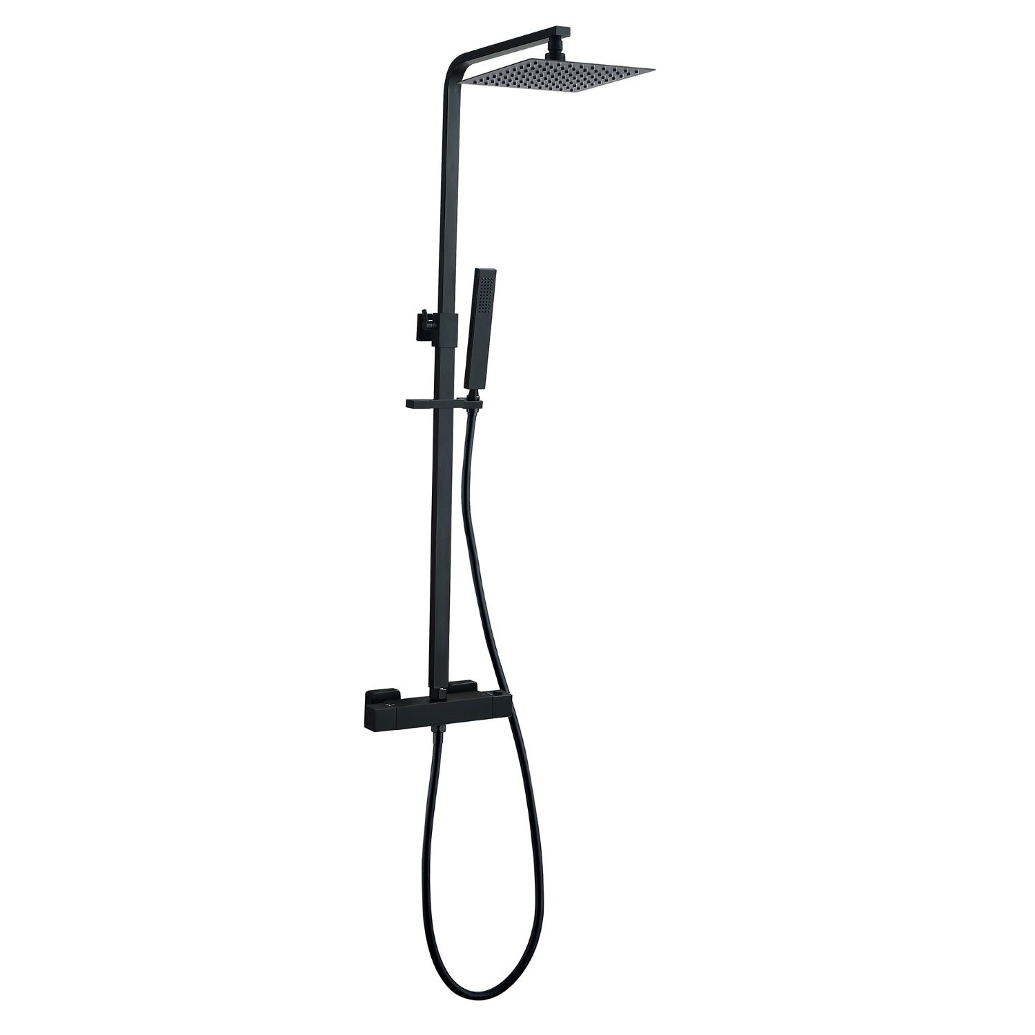 De regendoucheset Boss & Wessing Square Mat Zwart bevat een mooie handdouche waarvan het handvat doorloopt in de sproeikop. De handdouche bevat een flexibele slang en is erg handig.