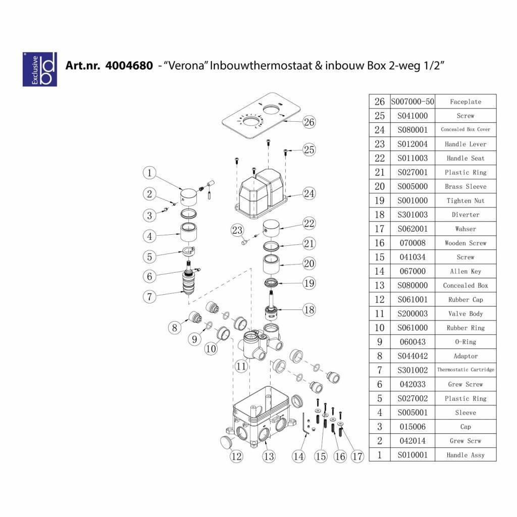 De afdekplaat van de kraan heeft een afmeting van 12x21cm. Daarnaast heeft de thermostaatkraan ingebouwde filters en keerkleppen een teruglopen te voorkomen. De kraan is een 2-weg omstel en is voorzien van geheel metalen ronde knoppen. De ene knop is voor het bedienen van het water welke richting het op moet: uit, naar hoofddouche of naar de metalen handdouche.