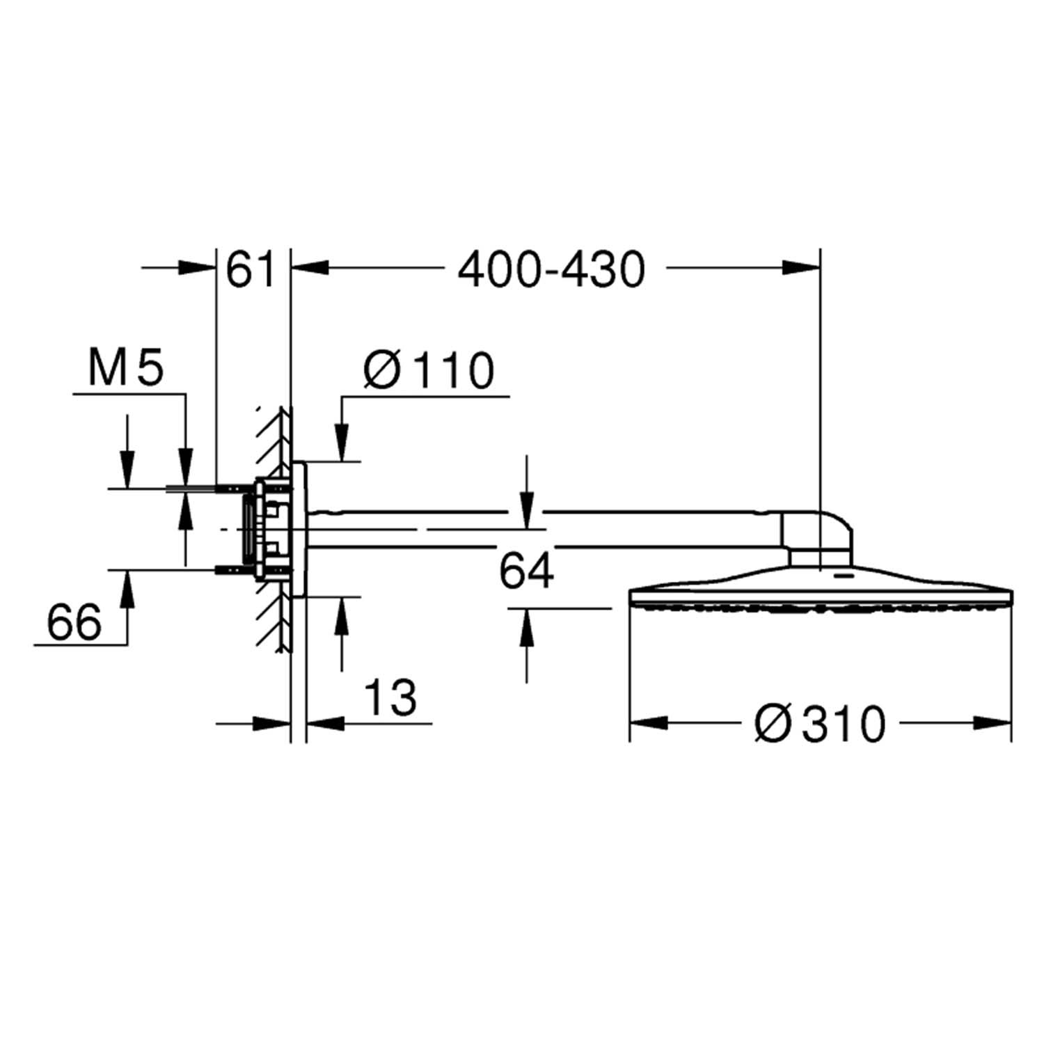 De hoofddouche heeft een diameter van 31 cm en de wandarm heeft een uiloop van 43 cm. Maak uw badkamer compleet met andere producten van Grohe in de kleur Cool Sunrise.