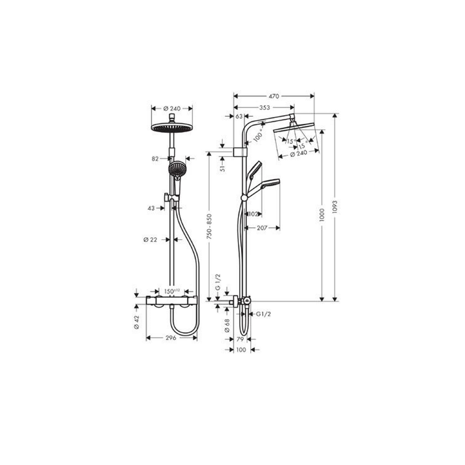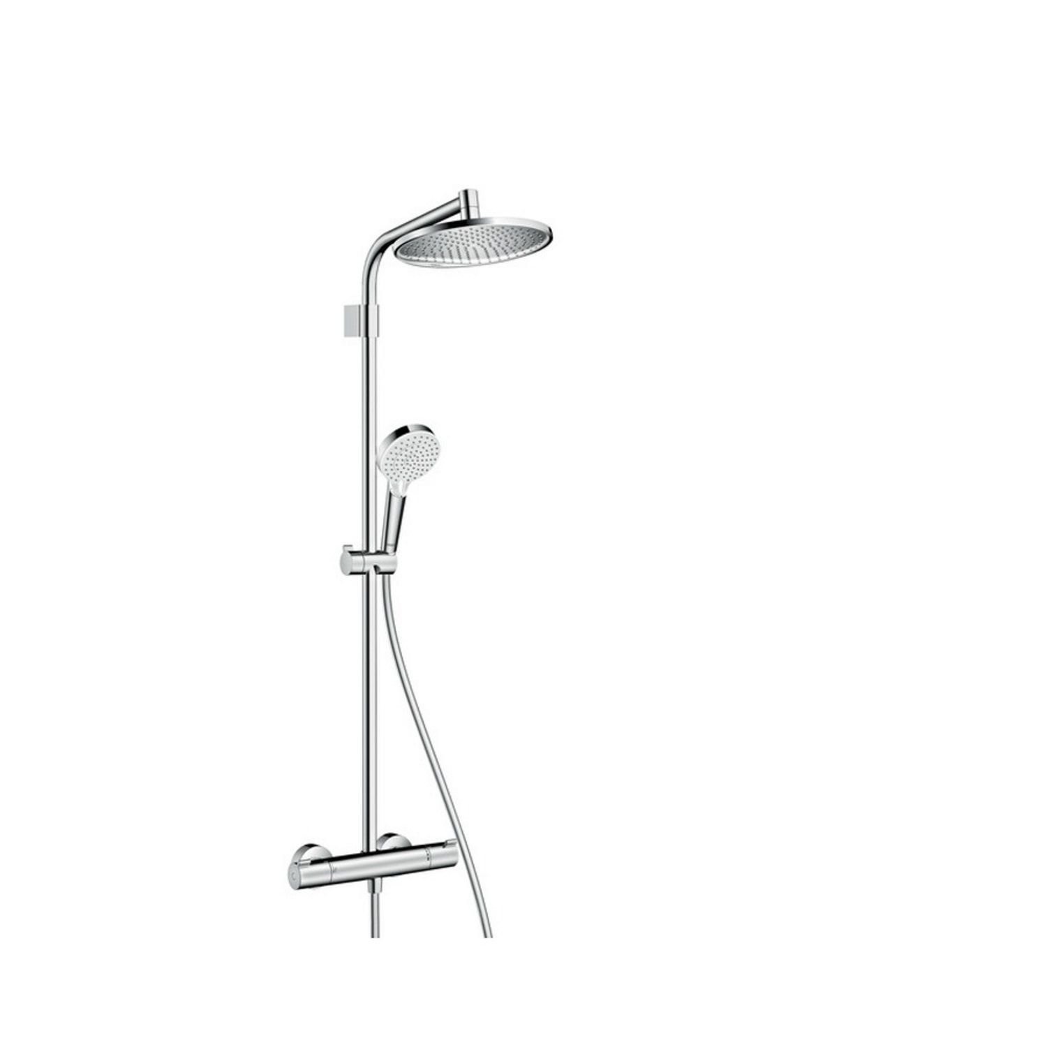 Dit Thermostatische Douchesysteem van Hansgrohe staat garant voor kwaliteit. Dit is een mooie combinatie met een regendouche en een hoofddouche. Zoals gezegd wordt de kraan thermostatisch gestuurd, waardoor u geen afwijkende temperaturen meer heeft onder de douche en kunt genieten van een fijne douche met een constante temperatuur. Met de SafetyStop voorkomt u dat u onder een te hete watertemperatuur komt te staan want deze stopt bij 40°. De douchekop van de regendouche is draaibaar door middel van een kogelgewricht, en beschikt over een horizontale arm van 35cm. De maximale tapcapaciteit is 18l/min.
