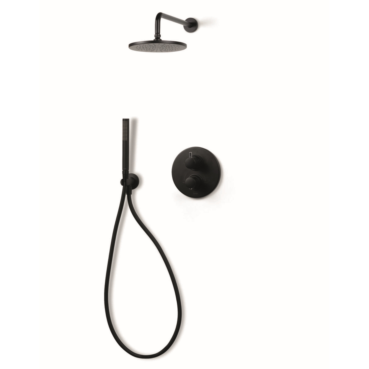 Deze set bestaat uit een hoofddouche, handdouche met handdouchehouder, een muurarm en een thermostaatkraan met afdekplaat. De afdekplaat heeft een diameter van 18,5 cm. De hoofddouche heeft een afmeting van 20 cm. De handdouche is 19 cm lang.