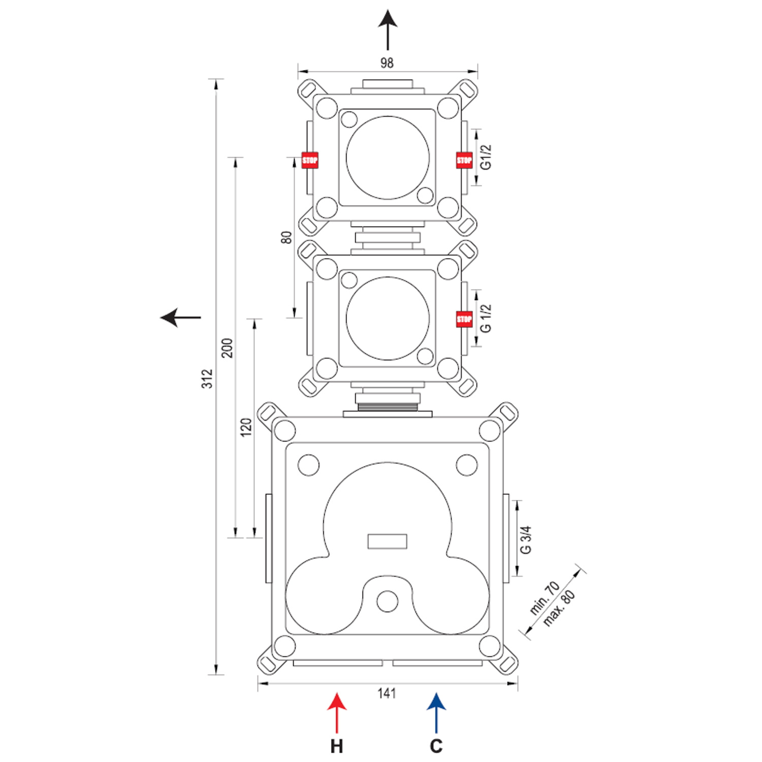 Wilt u graag wat luxe in uw badkamer halen? Dan is deze regendoucheset een zeer goede keuze. Deze regendoucheset bestaat uit een thermostaatkraan, handdouche (met 3 standen) en regendouche van 30 cm. De inbouwthermostaat is gemakkelijk te bedienen. Met de onderste knop stelt u de gewenste watertemperatuur in. Met de bovenste knop bepaalt u de gewenste douchestand en switcht u tussen hoofd- en handdouche. De thermostaat is voorzien van een temperatuurblokkering bij 38°C.