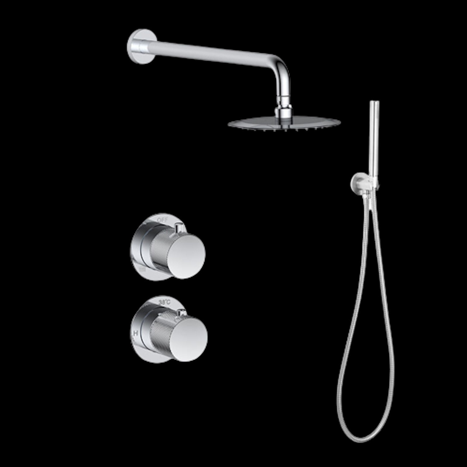 Geniet van een heerlijke douche met deze complete set van Sanilux. Deze set bevat een regendouche, thermostaat en handdouche, daarnaast ontvangt u het benodigde inbouwdeel. De regendouche heeft een mooie ronde kop van maar liefst 20 centimeter. De douchekop wordt bevestigd aan de meegeleverde muurbevestiging. Bepaal uw gewenste temperatuur en de waterstroom met de thermostaatkraan. De twee hendels zijn mooi afgewerkt met een geribbelde textuur. Dit zorgt voor een unieke uitstraling van uw douche! Verder ontvangt u ook een staafhanddouche met handdouchehouder en doucheslang. Deze is ideaal om bijvoorbeeld shampoo uit uw haar te spoelen.