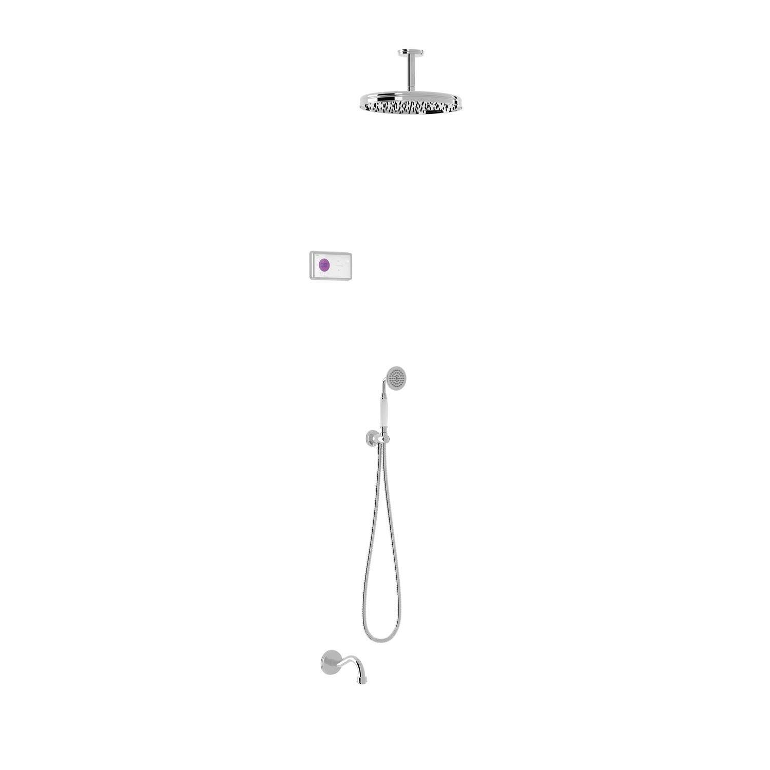 Deze regendoucheset van Tres komt uit de Clasic serie. Deze serie bestaat uit allemaal artikelen met een klassieke uitstraling. Dit is inbouwdouche is gemaakt van messing in een Chroom kleur. De hoofddouche heeft een diameter 31 cm en de antikalk handdouche heeft een diameter van 7.8 cm. De inbouw thermostatische kraan is elektronisch en voorzien van vochtafdichtingen van Schlüter in een witte kleur. Door het keramische binnenwerk behoud deze kraan jarenlang zijn kwaliteit. De lengte van de geribbelde doucheslang is 170 cm. De hoofddouche heeft een uitloop uit het plafond. Deze regendoucheset is inclusief baduitloop.