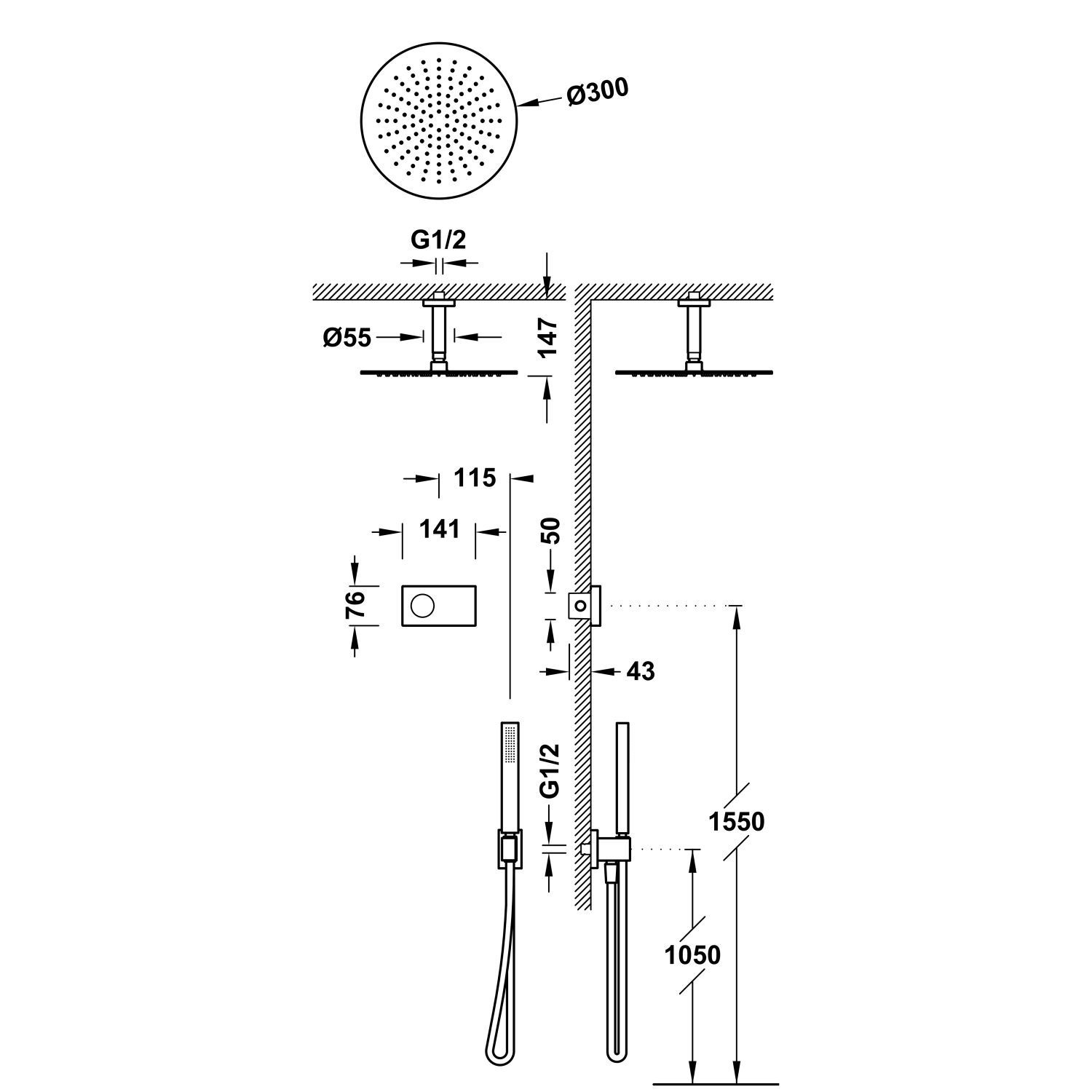 Deze set onderscheidt zich met zijn elektronische bediening. U bedient de regendoucheset met de thermostaat die u op de muur bevestigd. Hiermee kunt u de douche aanzetten, de omstelling bedienen en de temperatuur bepalen. Erg modern en handig.