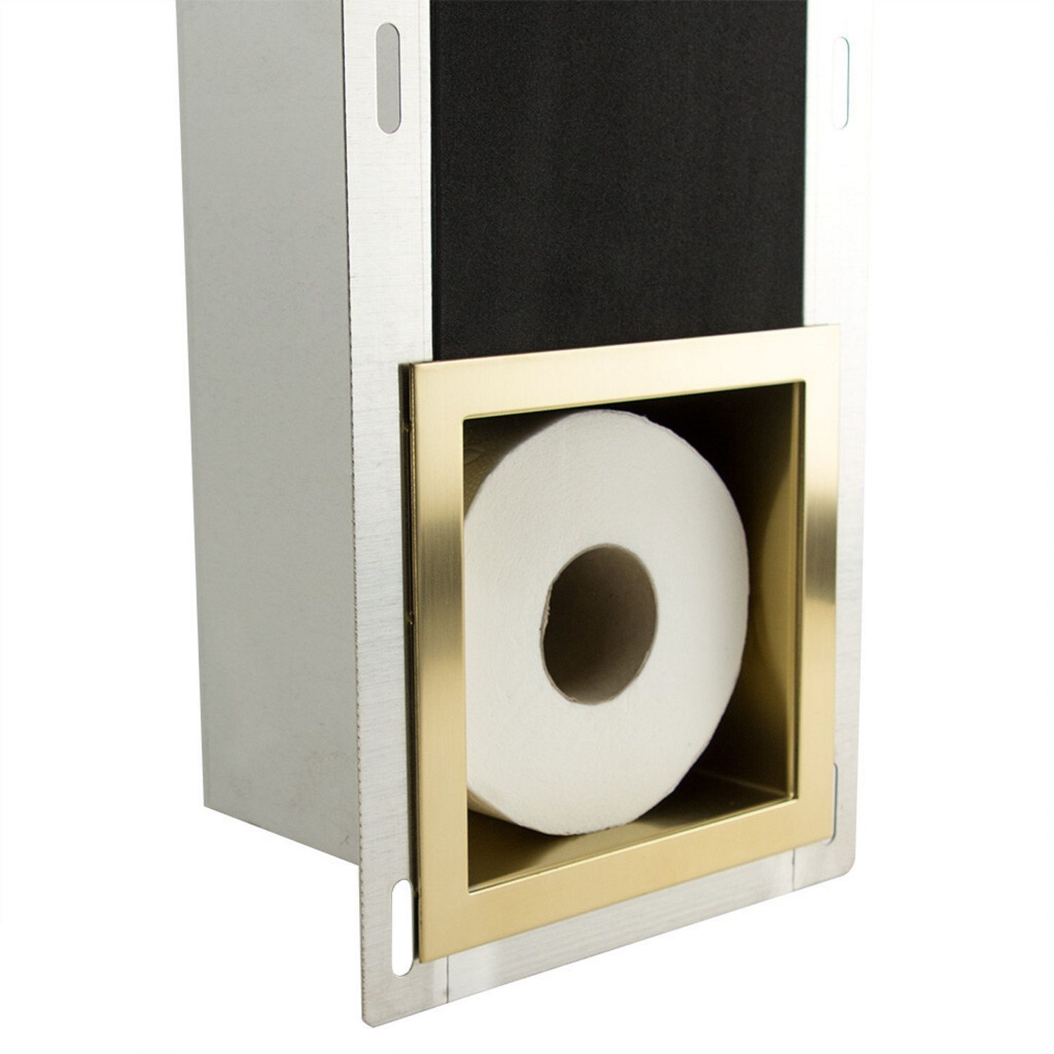 Het toiletpapier dispenser bestaat uit een koker, waarin maximaal 5 rollen toiletpapier kunnen worden opgeslagen. Via een gat (op ergonomische hoogte) kunt u een rol uitnemen, waarna de volgende rol vanzelf omlaag wordt gedrukt. De RVS inbouw toilethouder met gouden inzet stuk zorgen voor een luxe uitstraling.