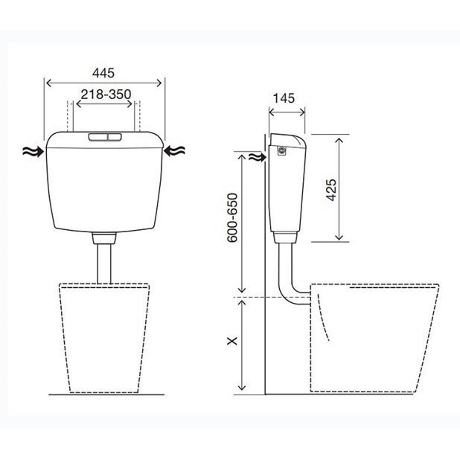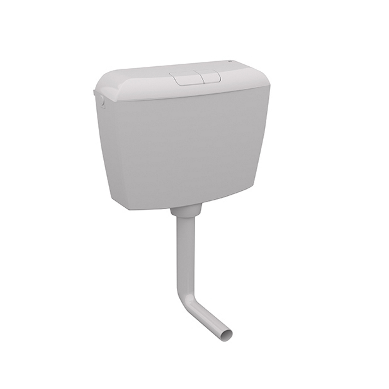 Dit laaghangend kunststof reservoir in wit kan direct aan de muur bevestigd worden, iets boven het toilet. Het reservoir heeft een dubbele spoelfunctie waardoor je kan kiezen voor een grote spoelbeurt van 6 liter of een waterbesparende van slechts 3 liter en wordt geleverd inclusief muurbevestigingsmateriaal, valpijp met een diameter van 50/40mm en een rubber ring voor aansluiting op de toiletpot.