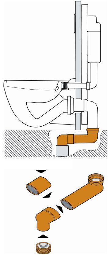 De sprongbocht is heel geschikt renovatie projecten waar u bijvoorbeeld een oud staand closet vervangt met een wandcloset, aangezien de sprongbocht moeiteloos uw nieuwe hangende toilet aansluit op de vloer afvoer.